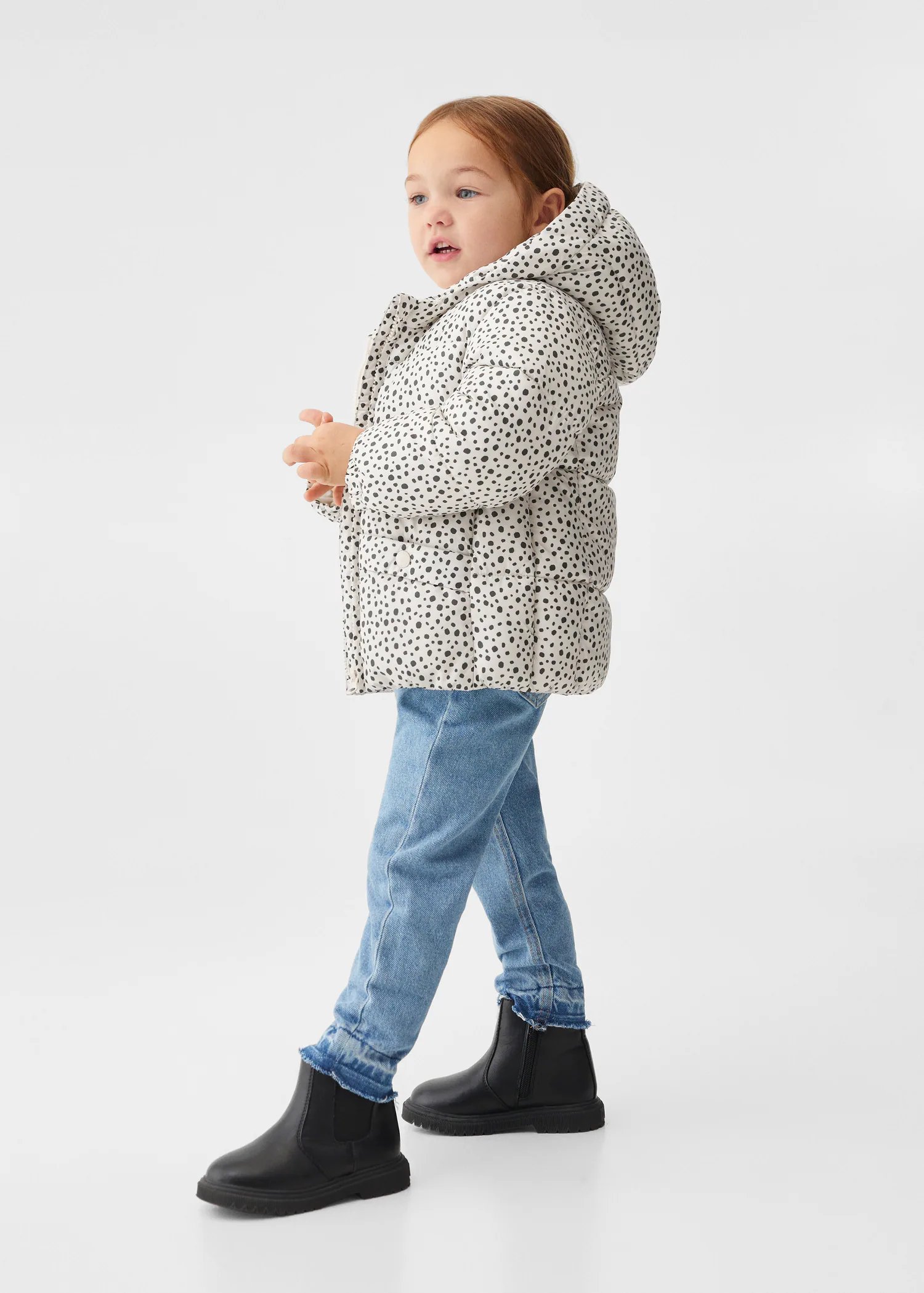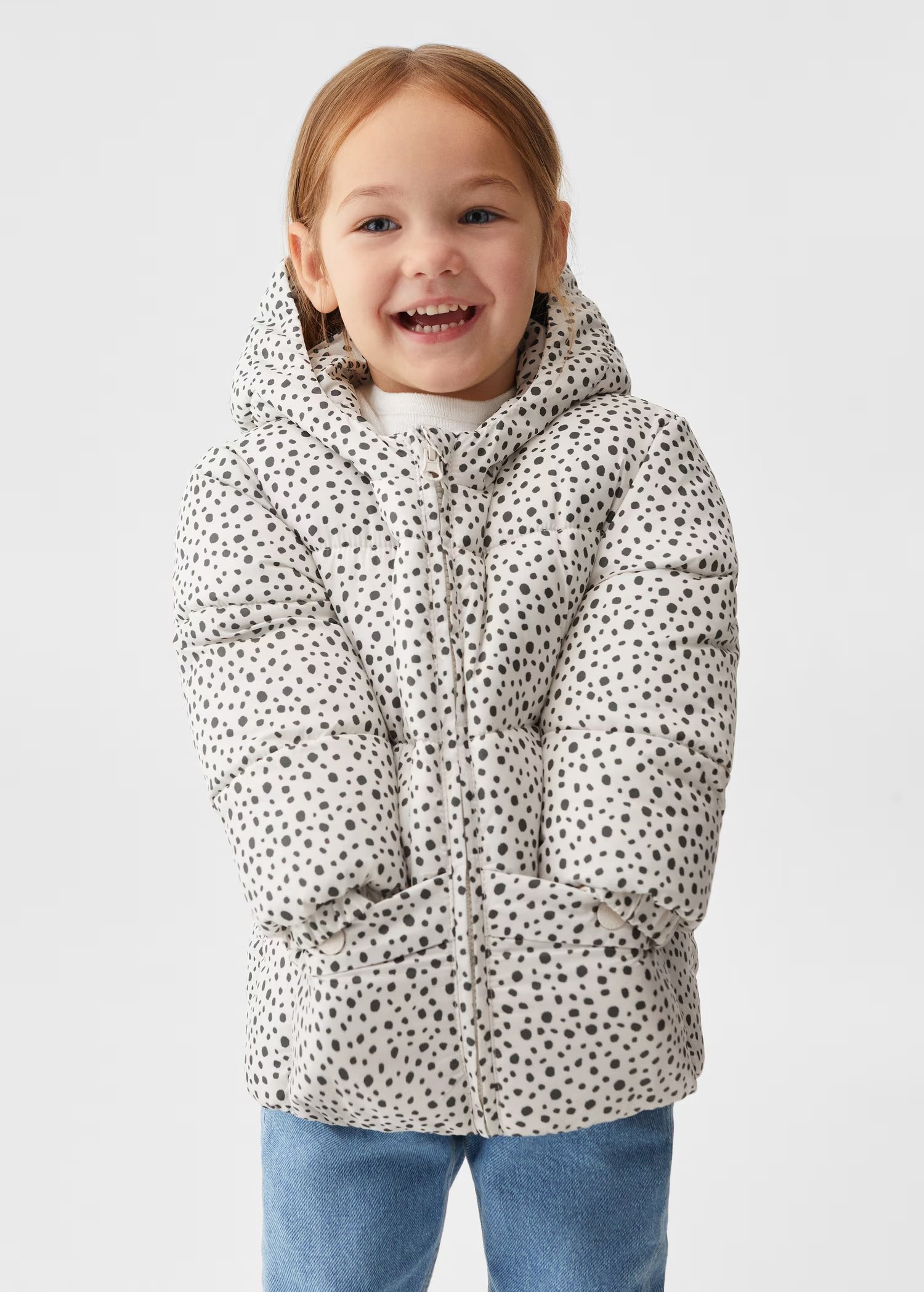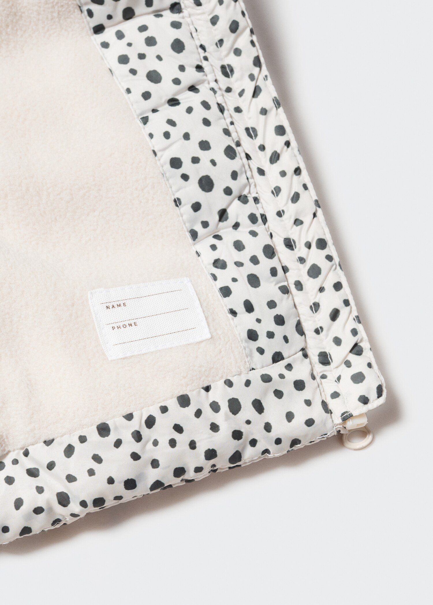 Design matelassé. Design Droit. Imprimé. Capuche. Manche longue. Deux poches. Fermeture Éclair. Étiquette d’identité à l’intérieur.