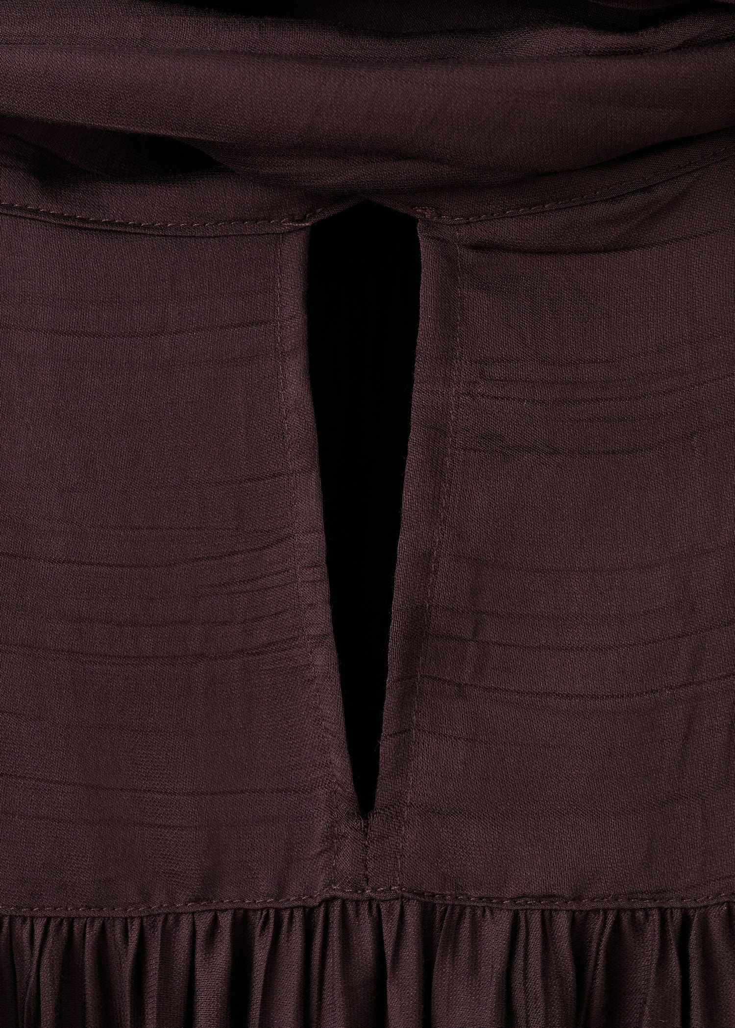 Avec une coupe droite, ce vêtement présente un élégant col montant orné d’un foulard et des manches longues à poignets boutonnés