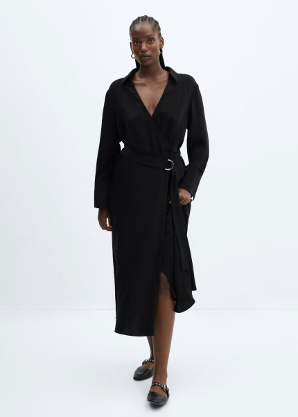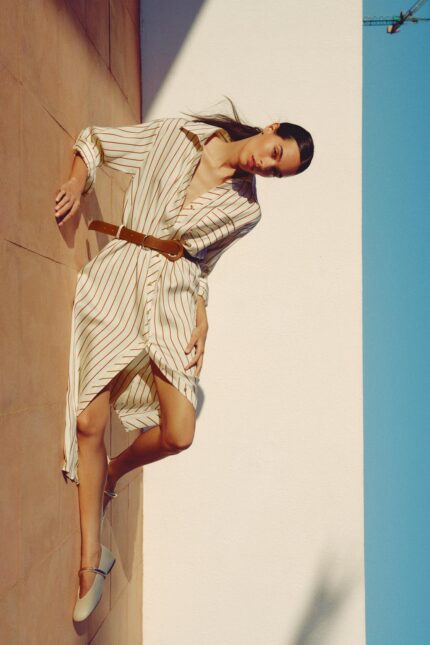 ROBE MI-LONGUE À RAYURES AVEC CEINTURE