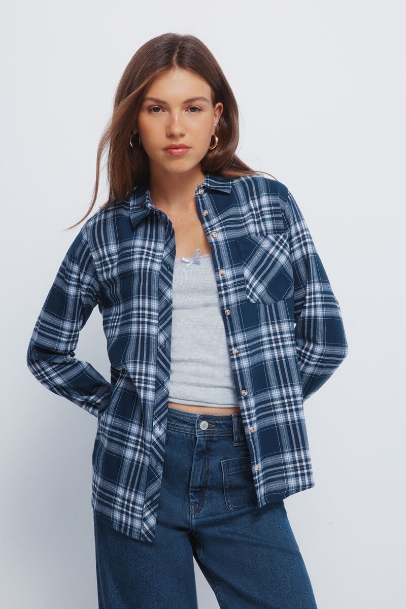 Chemise à carreaux en lurex avec poche