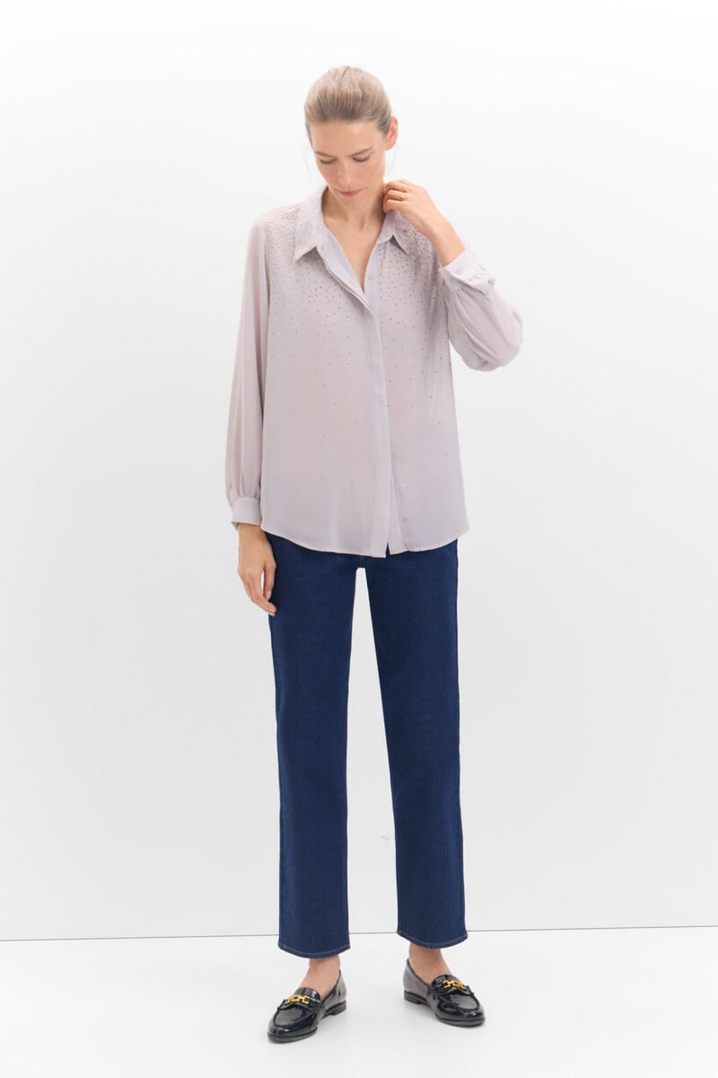 Chemise avec détails en strass -transparente
