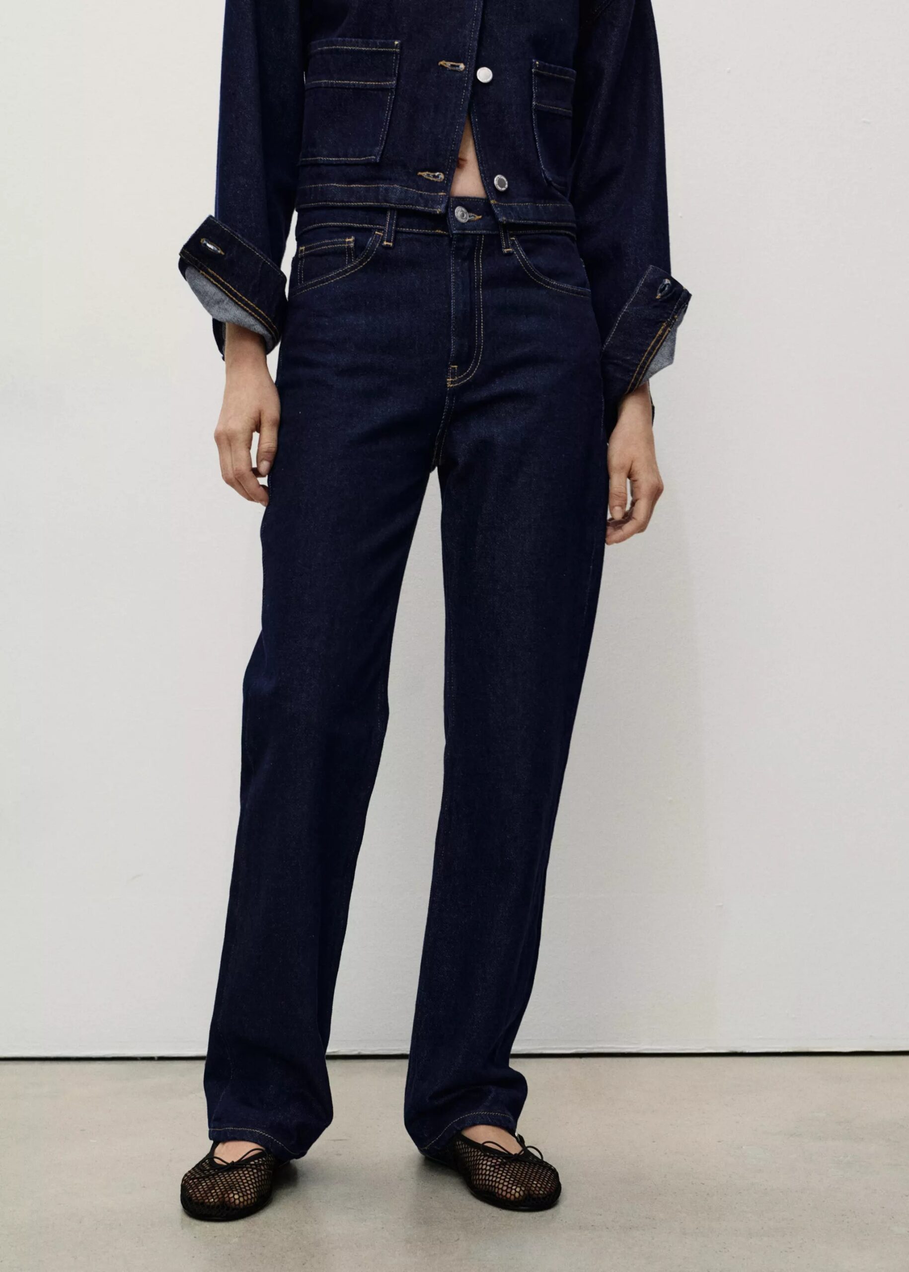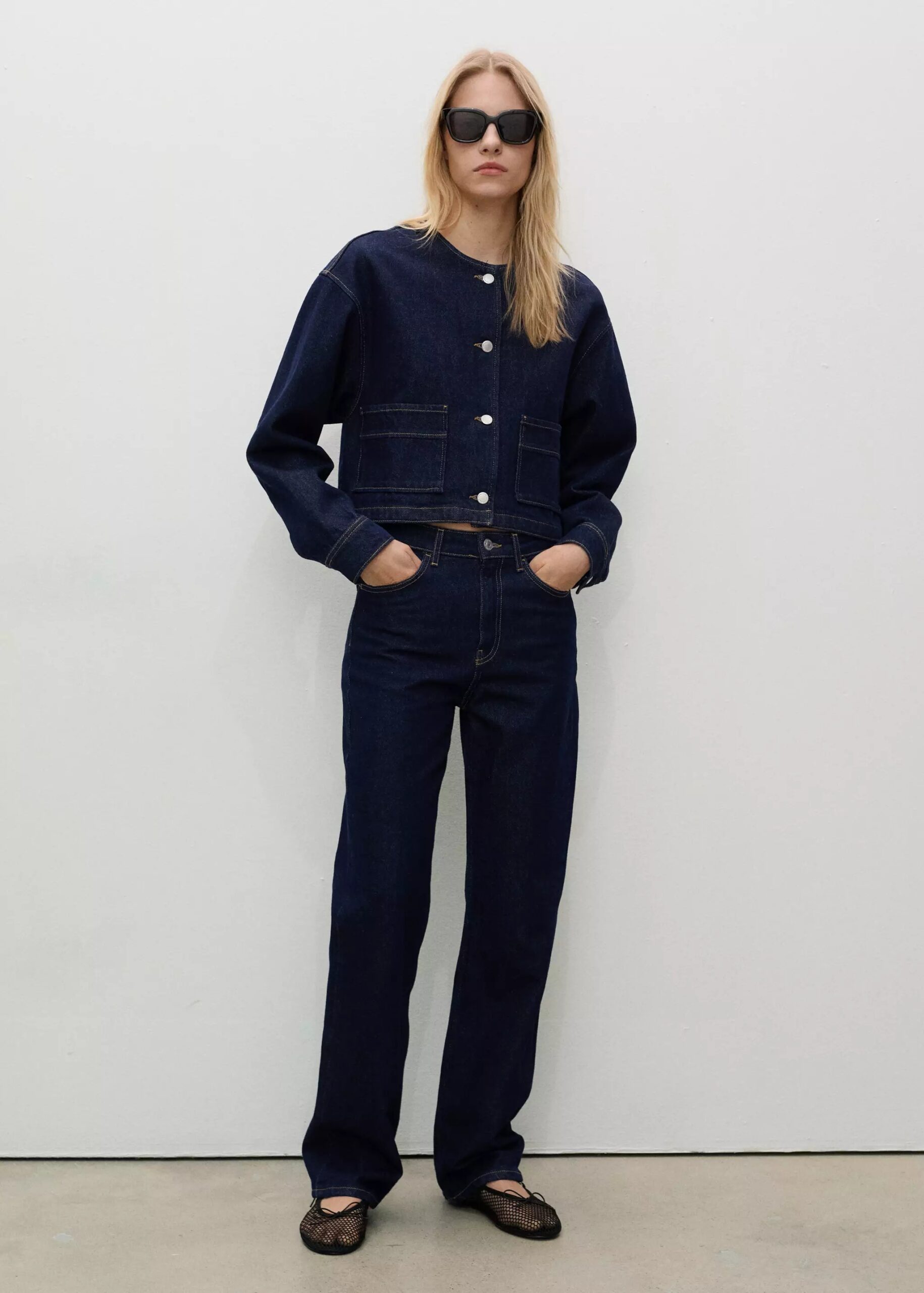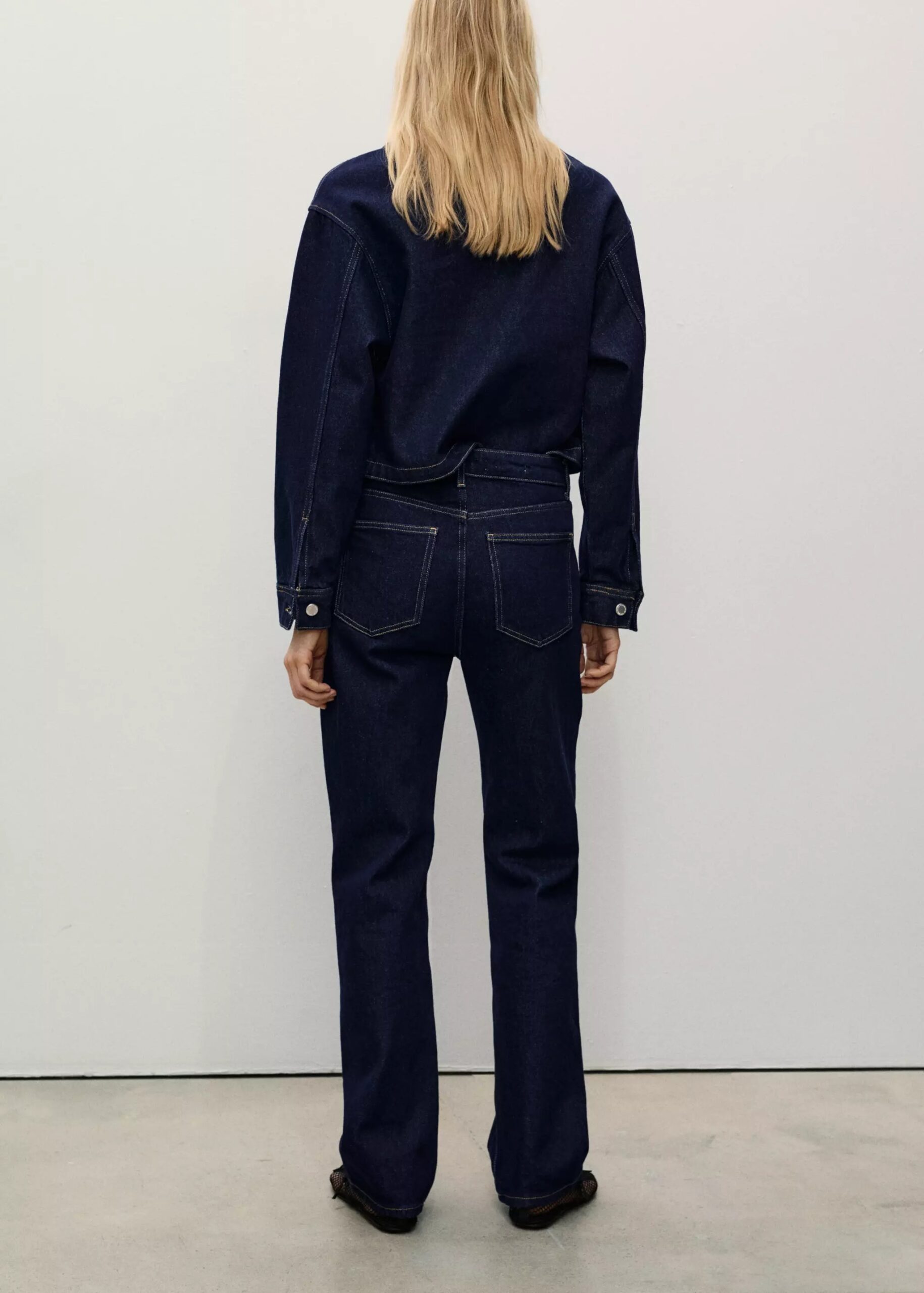 Coupe standard. Taille mi-haute. Coupe droite. Cinq poches. Fermeture zip et bouton. Passants de ceinture. Longueur intérieure 78 cm. Tissu en coton de style jean. Design long