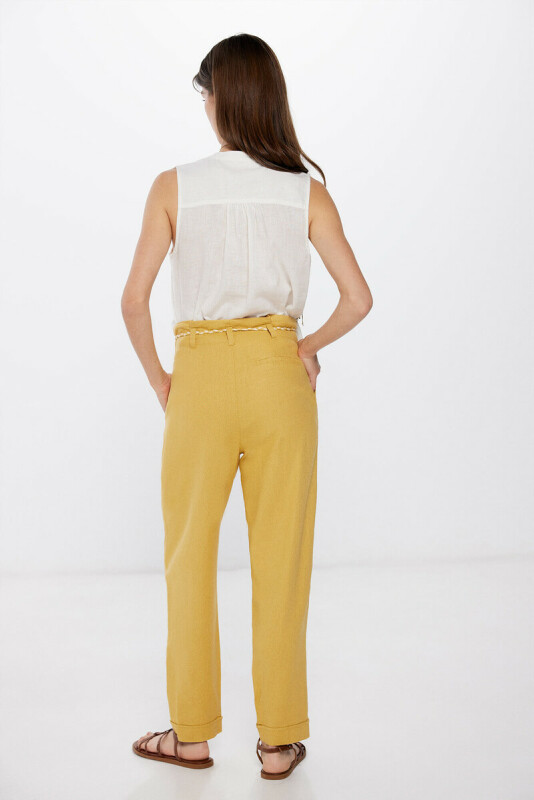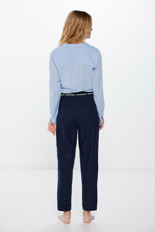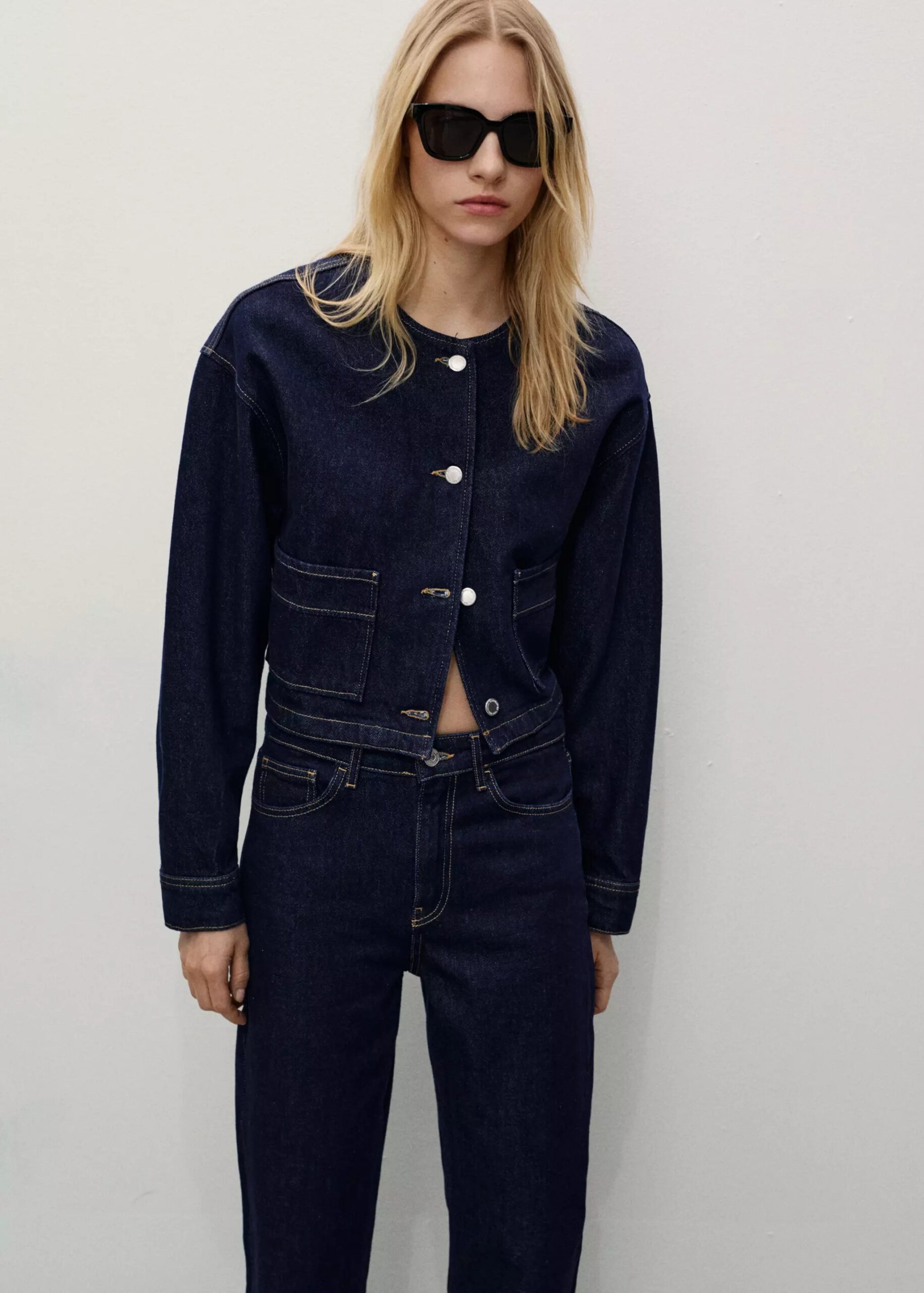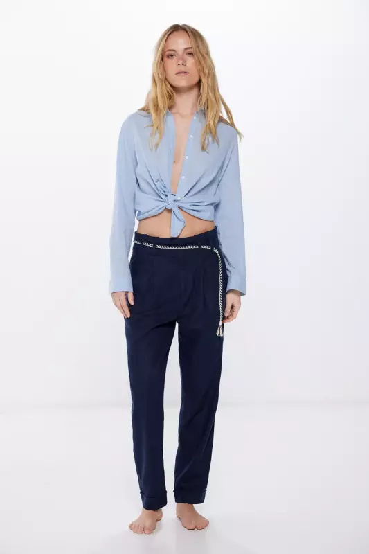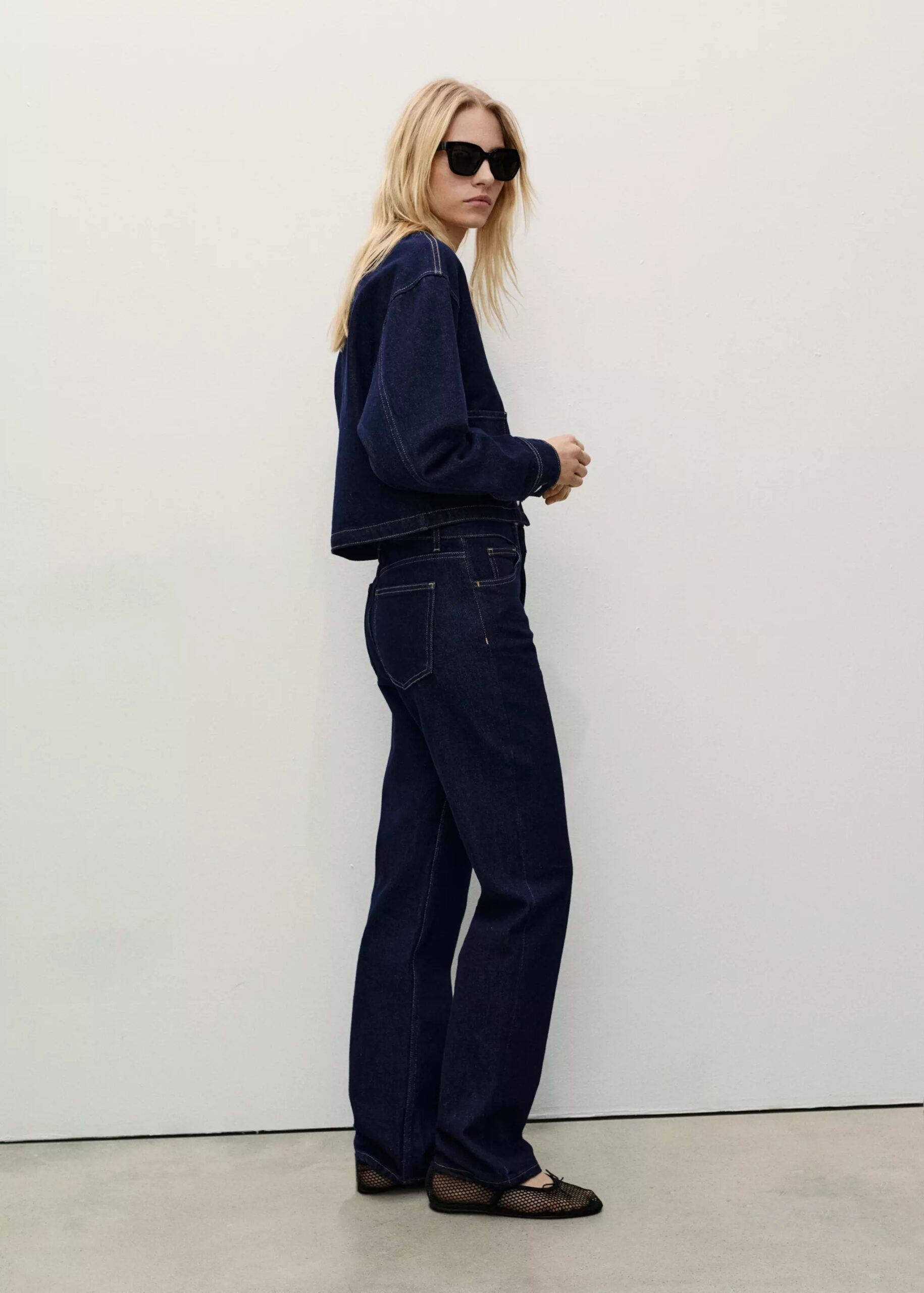 Coupe standard. Taille mi-haute. Coupe droite. Cinq poches. Fermeture zip et bouton. Passants de ceinture. Longueur intérieure 78 cm. Tissu en coton de style jean. Design long