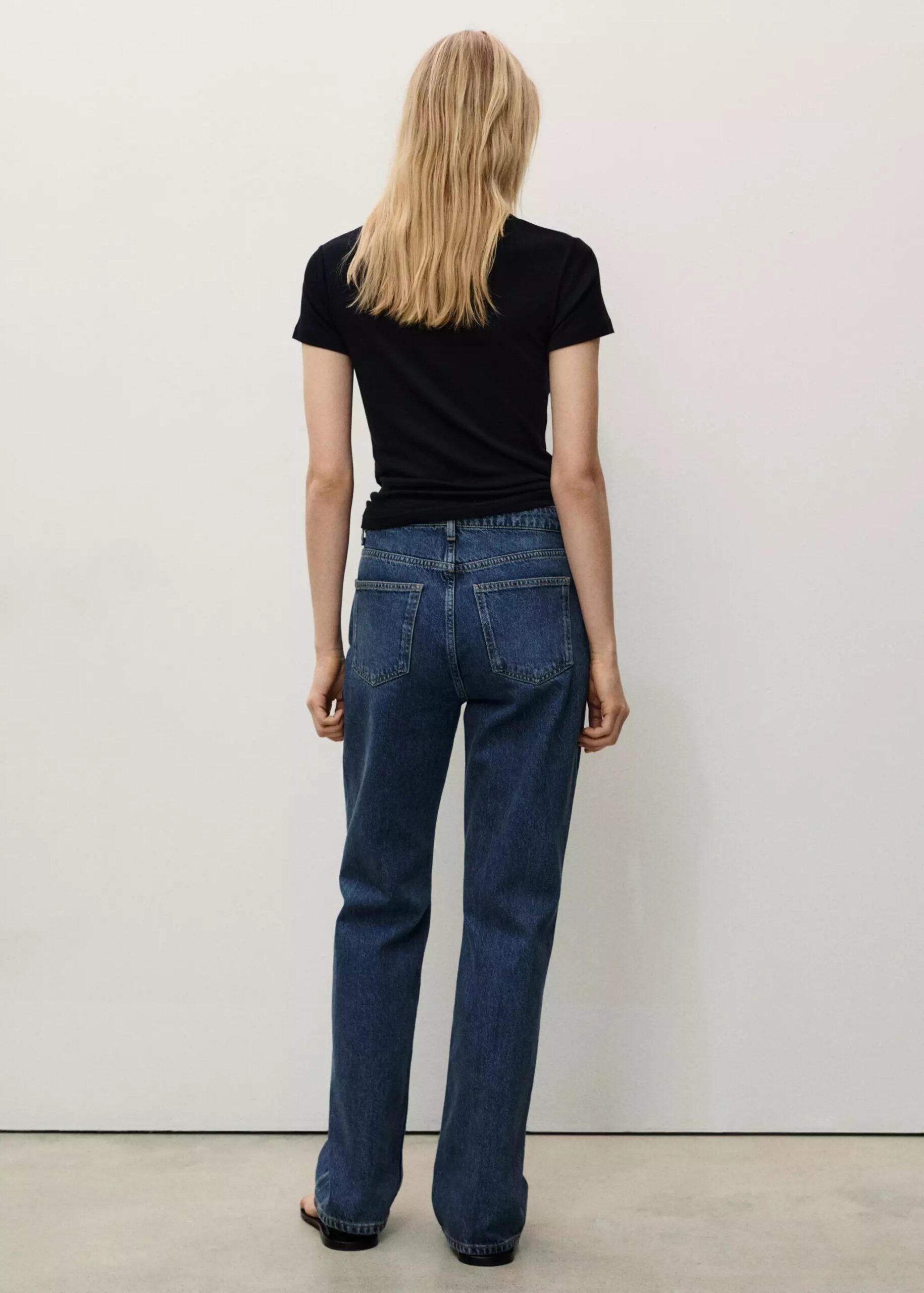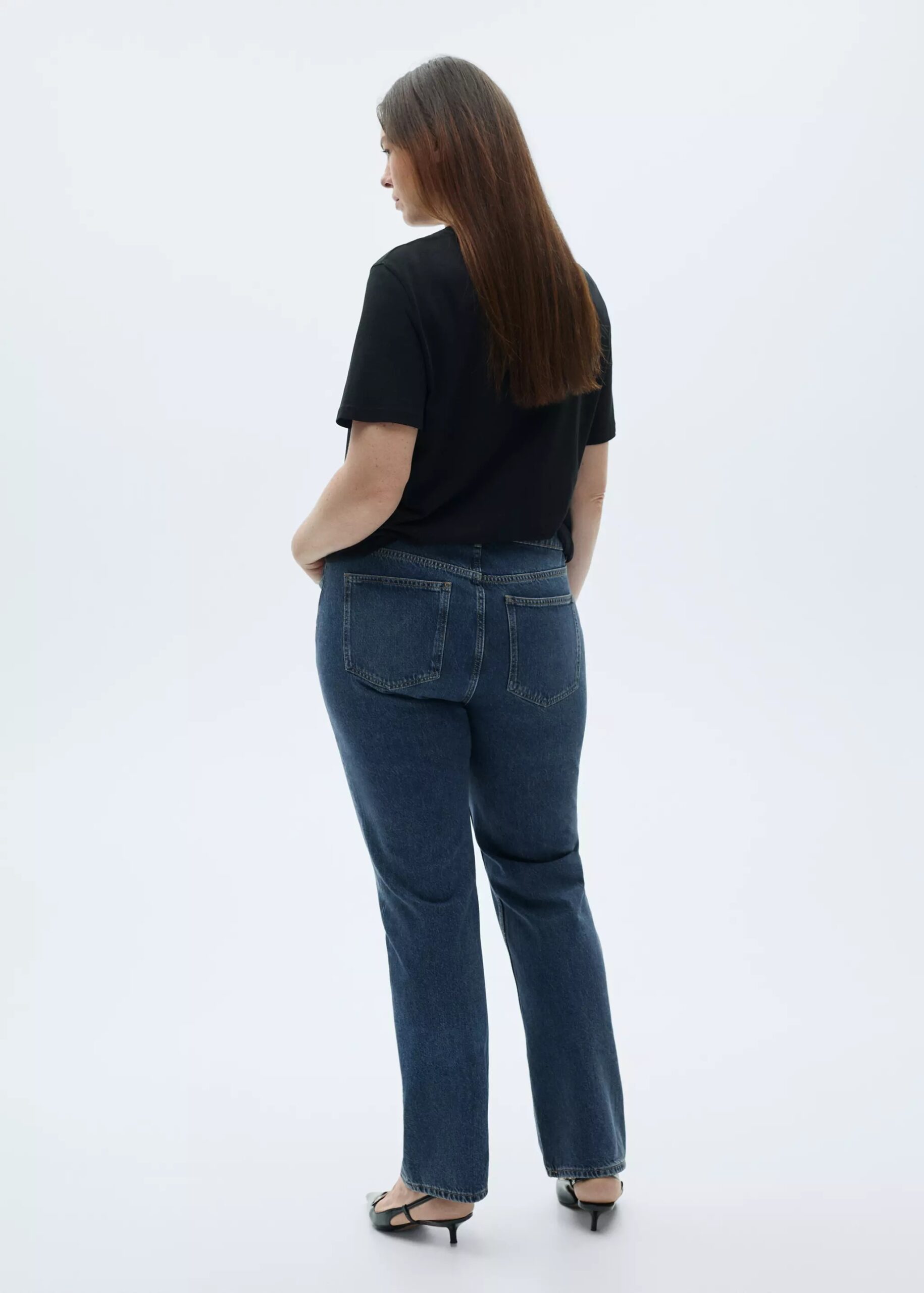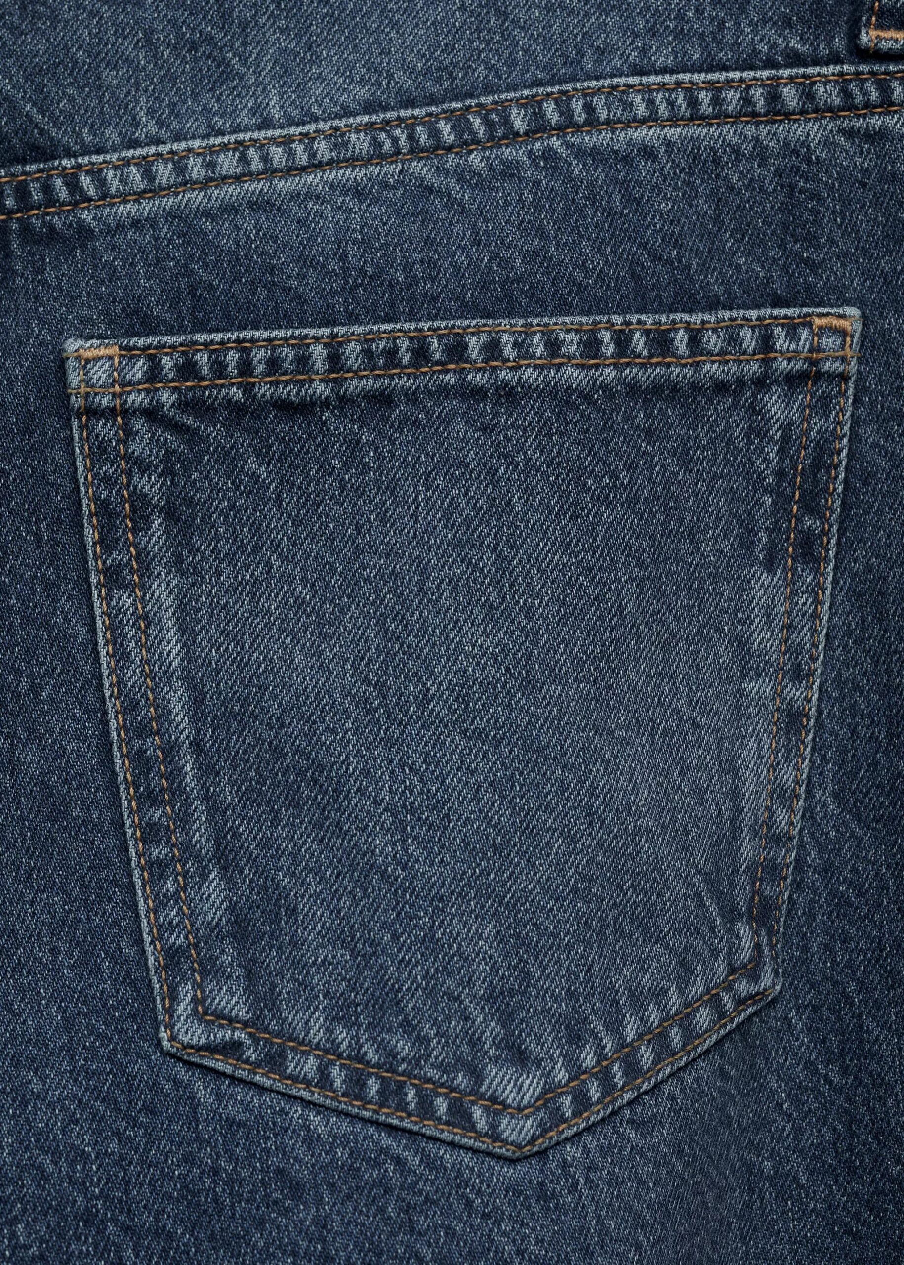 Coupe standard. Taille mi-haute. Coupe droite. Cinq poches. Fermeture zip et bouton. Passants de ceinture. Longueur intérieure 78 cm. Tissu en coton de style jean. Design long