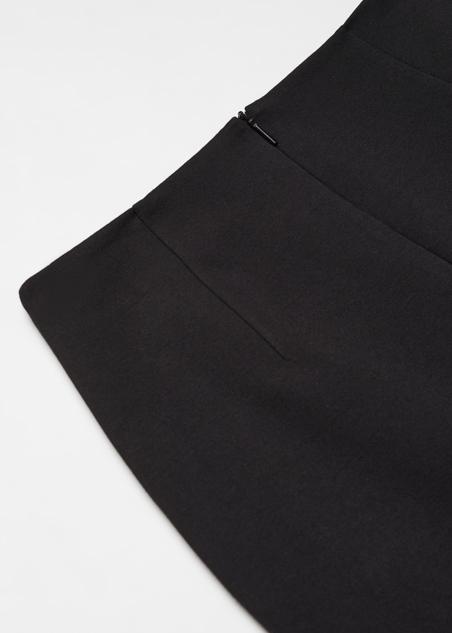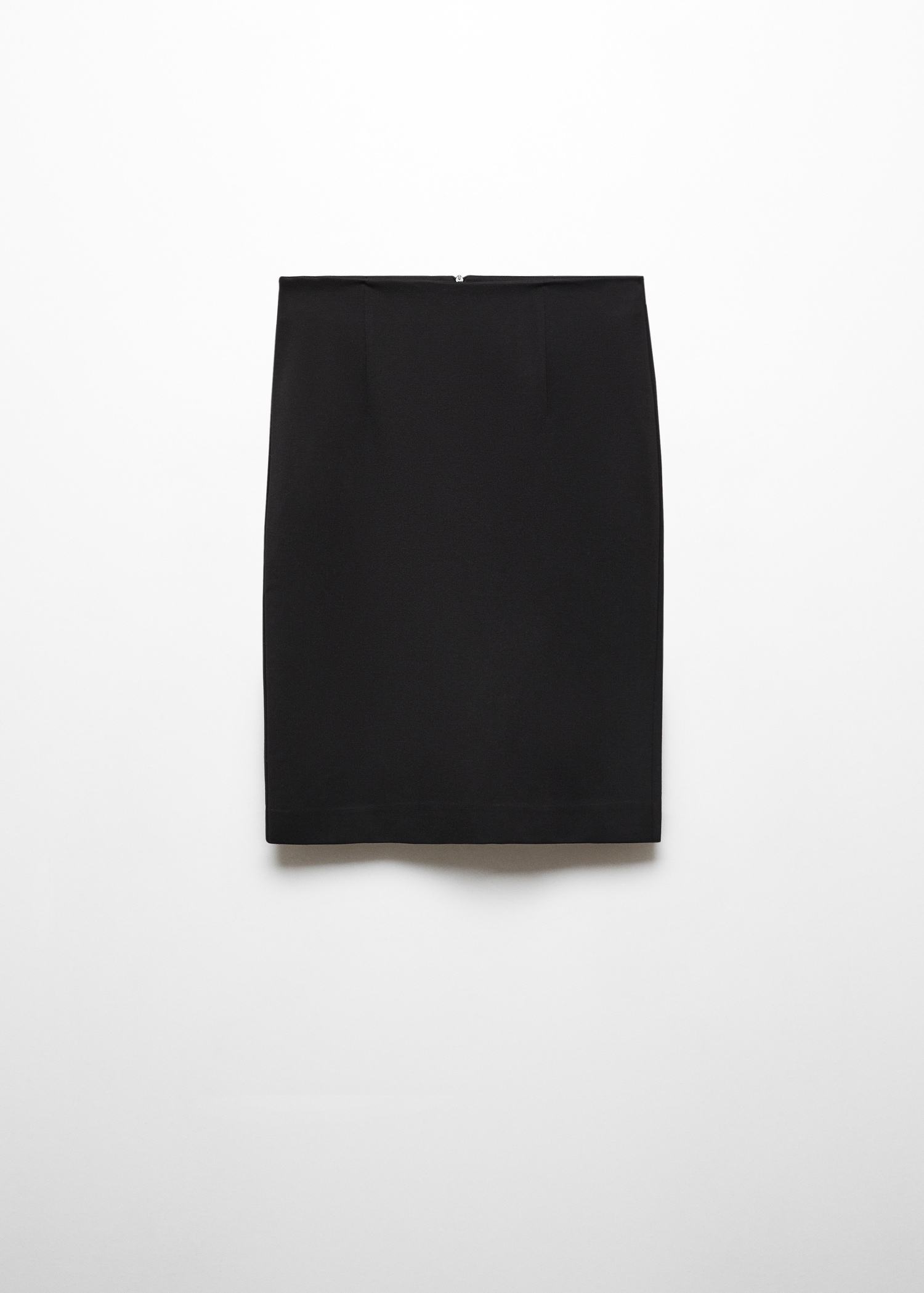 Tissu en maille point de Rome. Crayon. Coupe midi. Taille haute. Fermeture Éclair invisible à l’arrière. Détail d’ouverture à l’arrière. Total look. Looks de bureau.