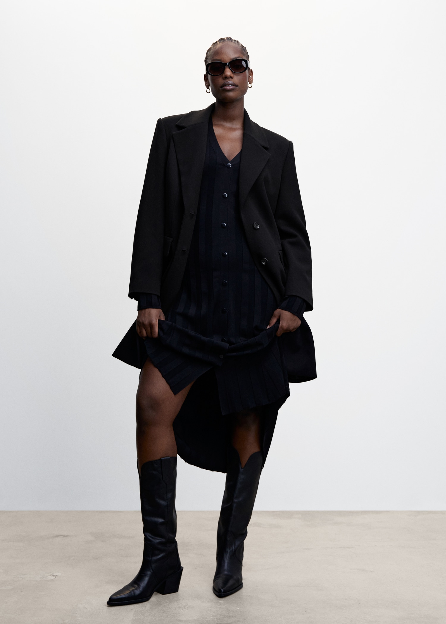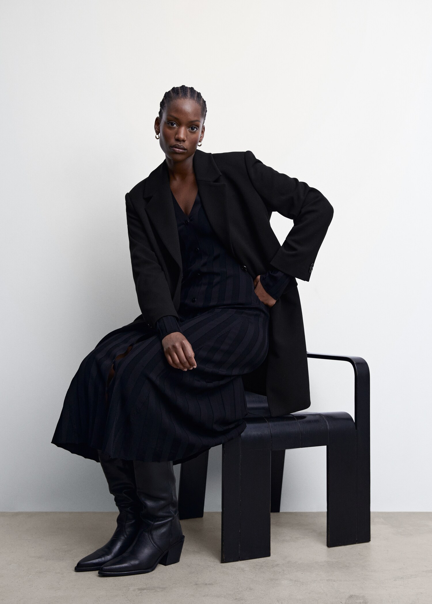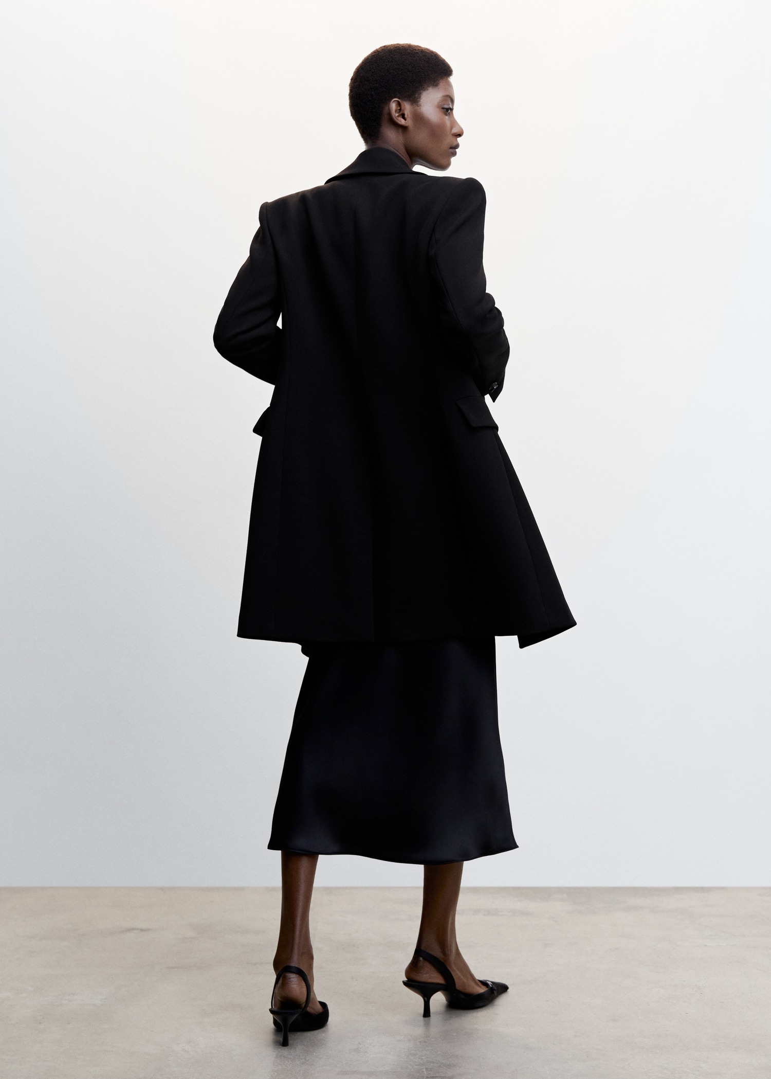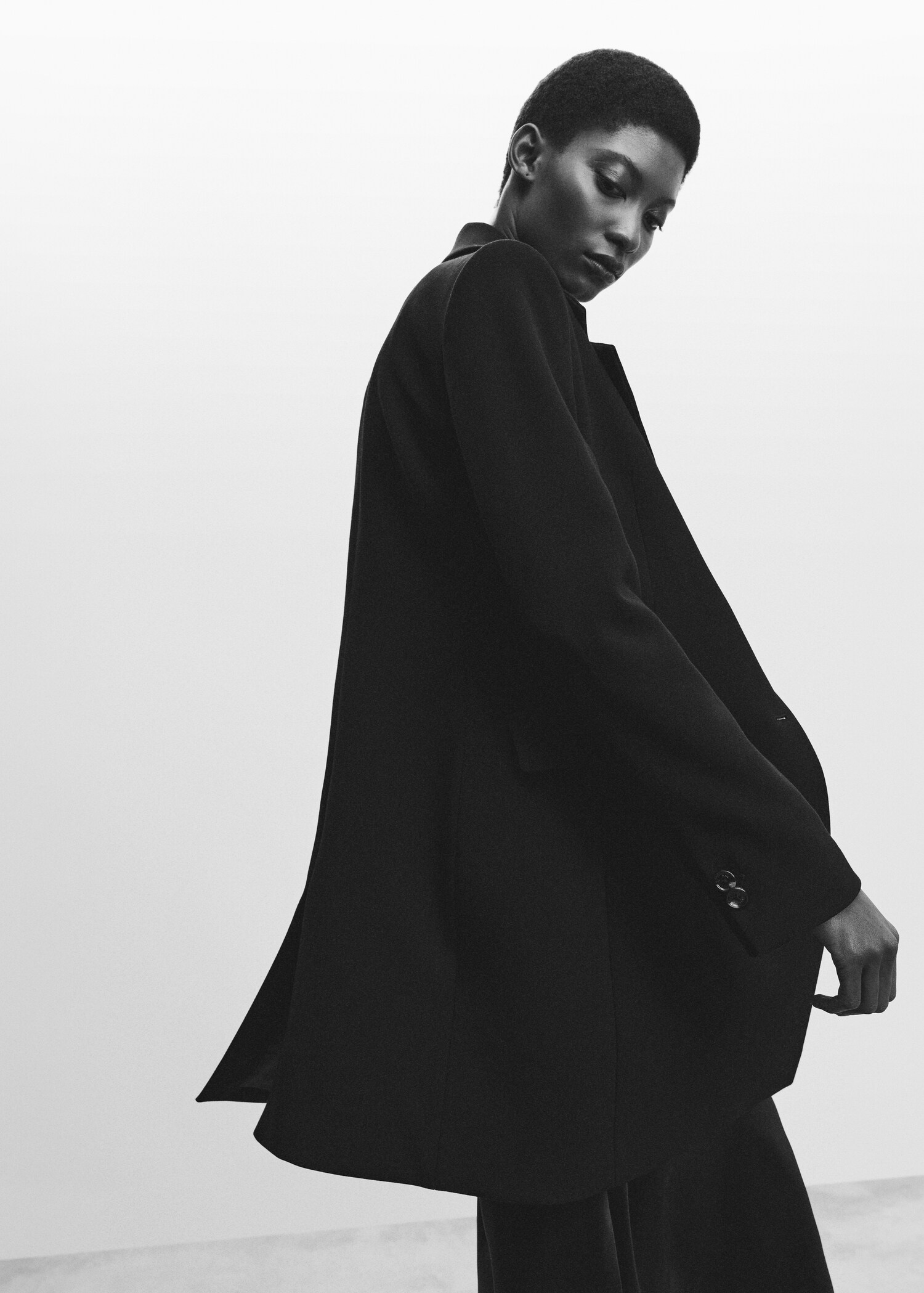 Tissu mélange de laine . Design croisé. Coupe droite. Col en V avec rabat. Revers crantés. Manche longue. Deux poches à rabat sur le devant. Fermeture à boutons sur le devant. Doublure. Disponible Plus. Looks de bureau