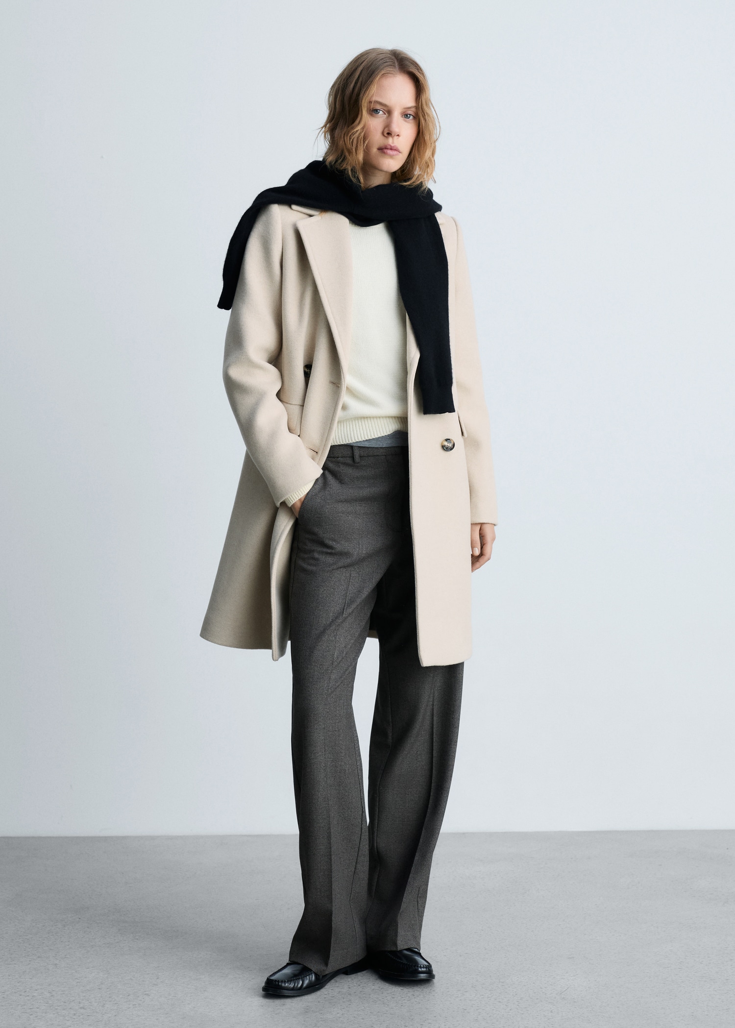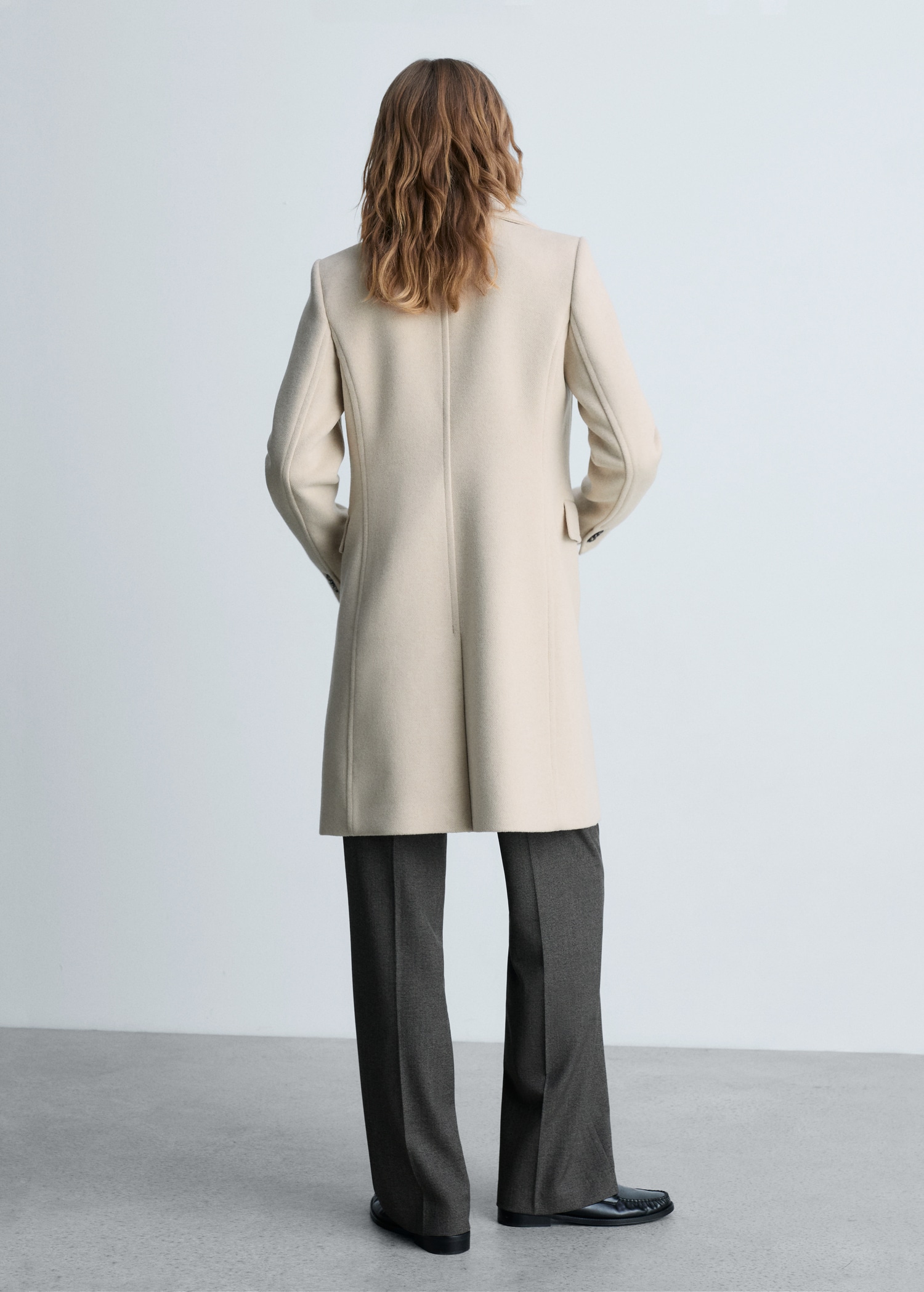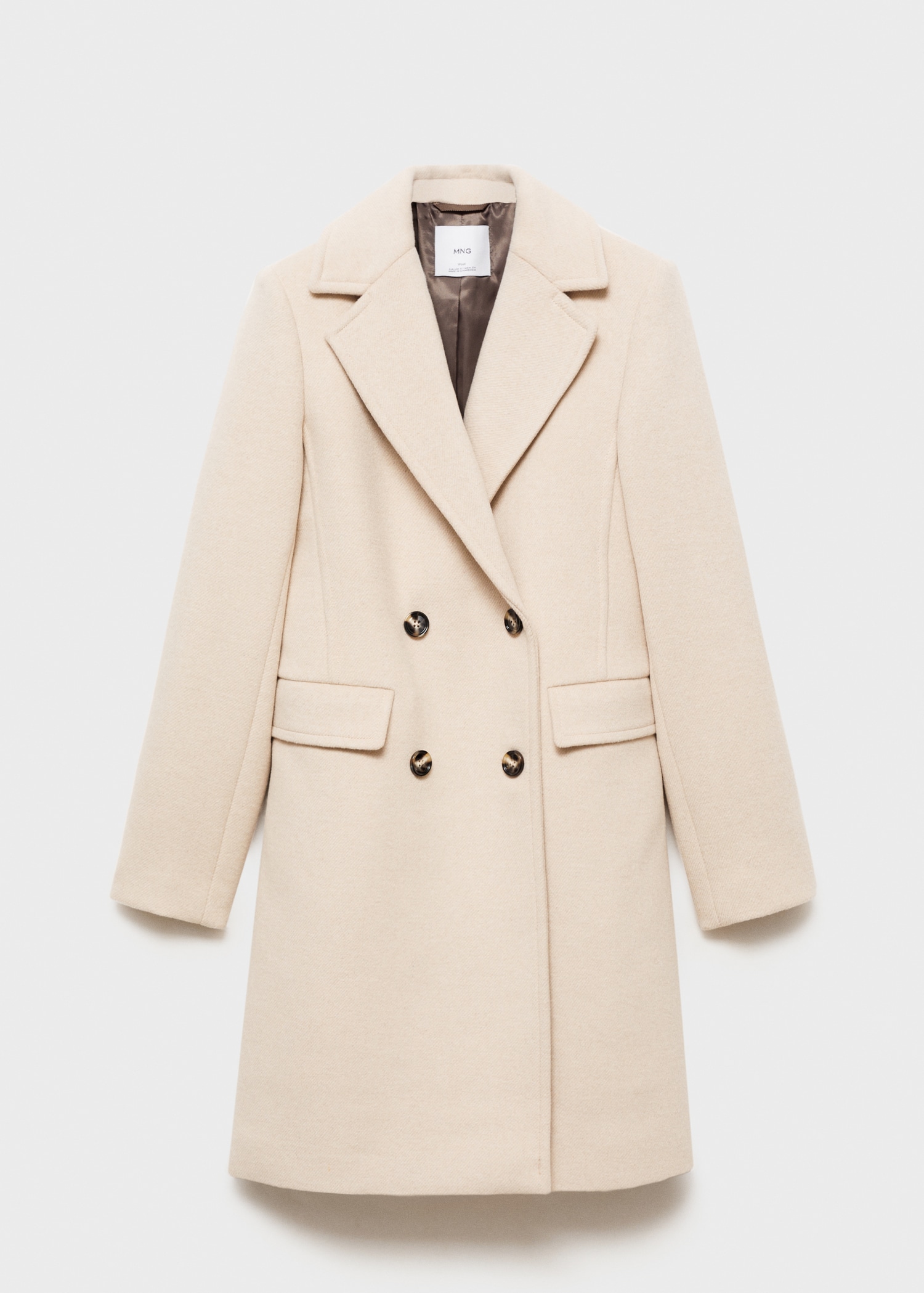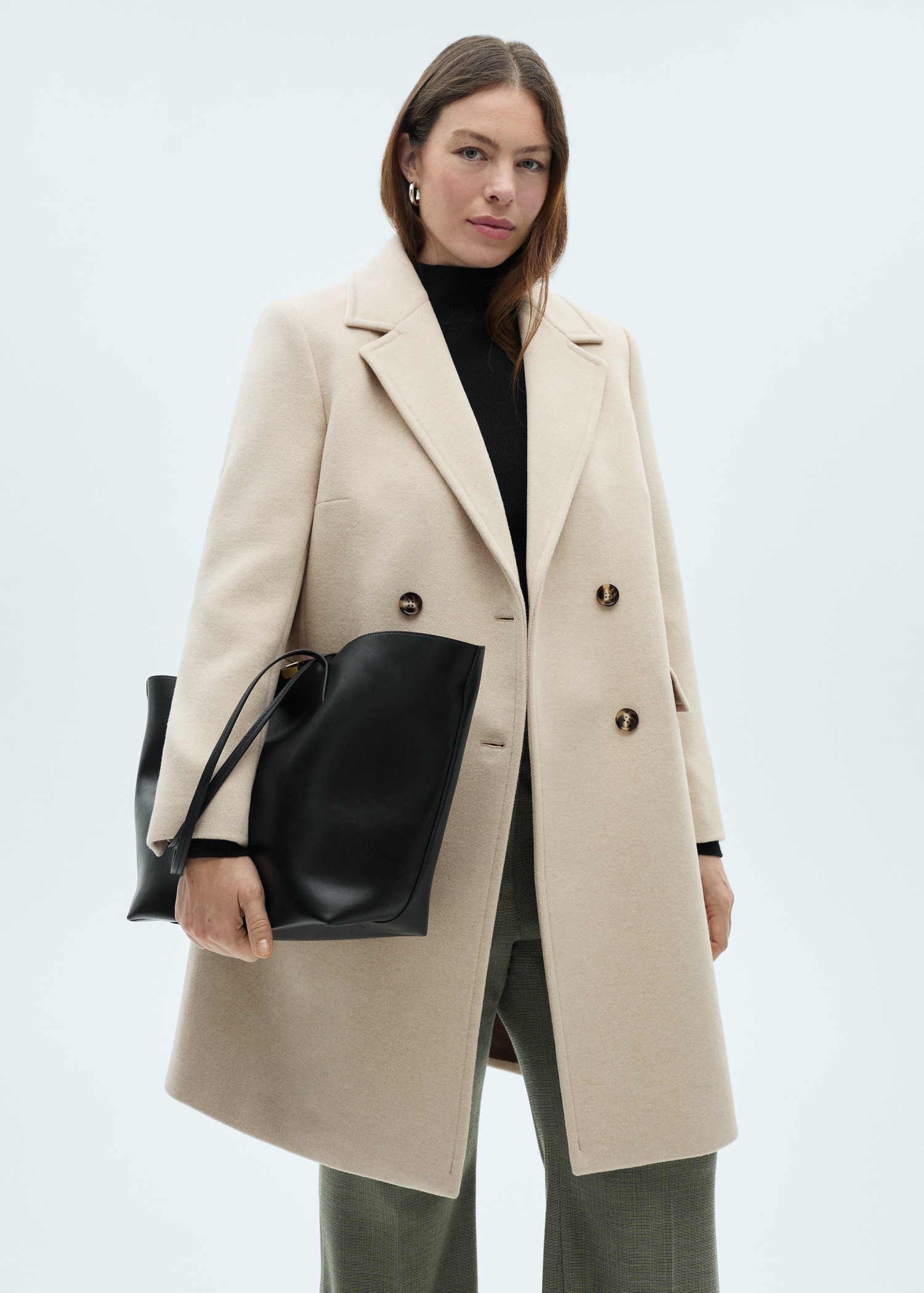 Tissu mélange de laine recyclée. Drap. Design croisé. Design droit. Col en V avec rabat. Revers crantés. Manche longue. Deux poches à rabat sur le devant. Doublure. Fermeture à boutons sur le devant. Disponible Plus. Looks de bureau. Le mannequin mesure 1,75 m et porte une taille S/36. Tissu de laine mélangé.