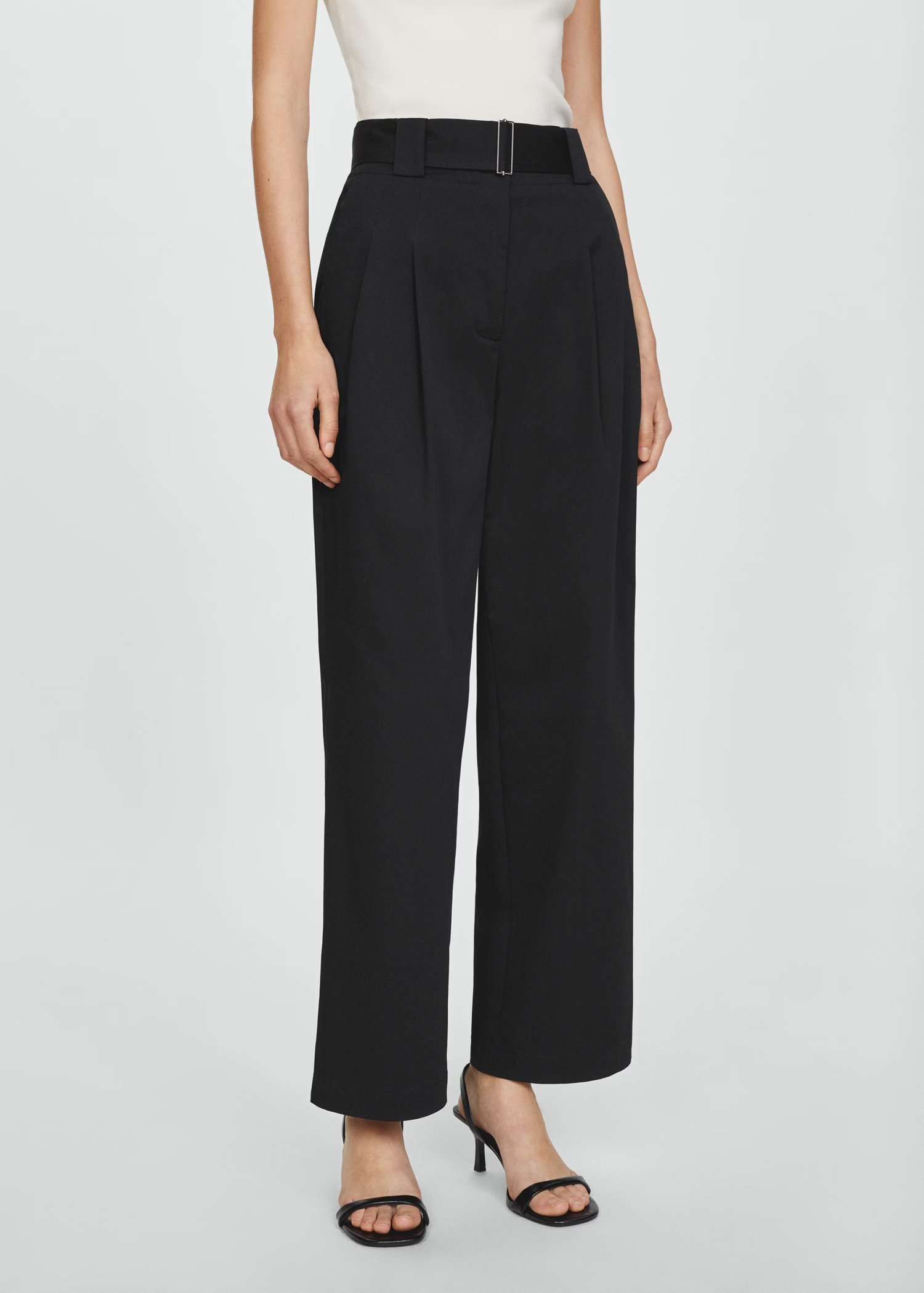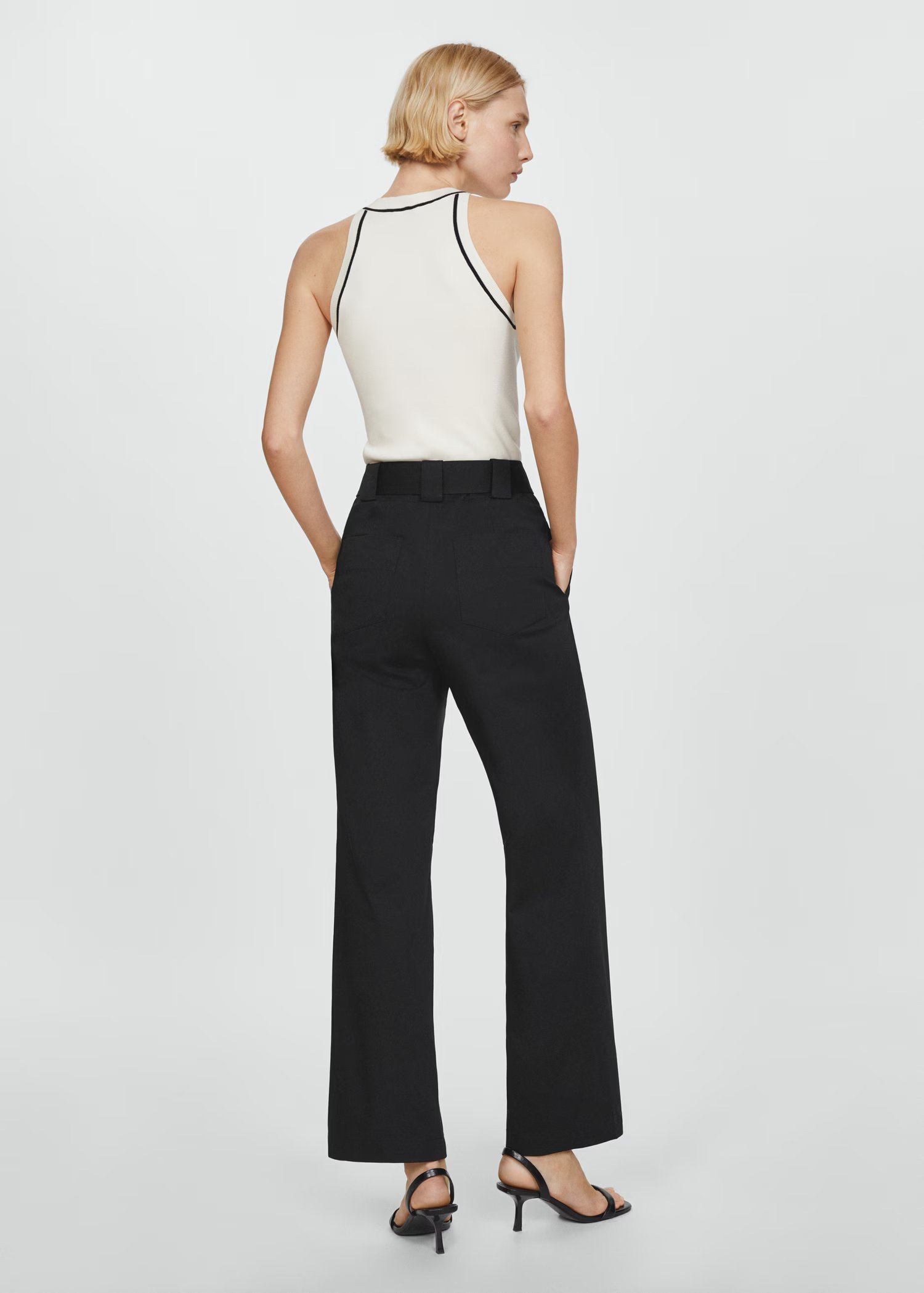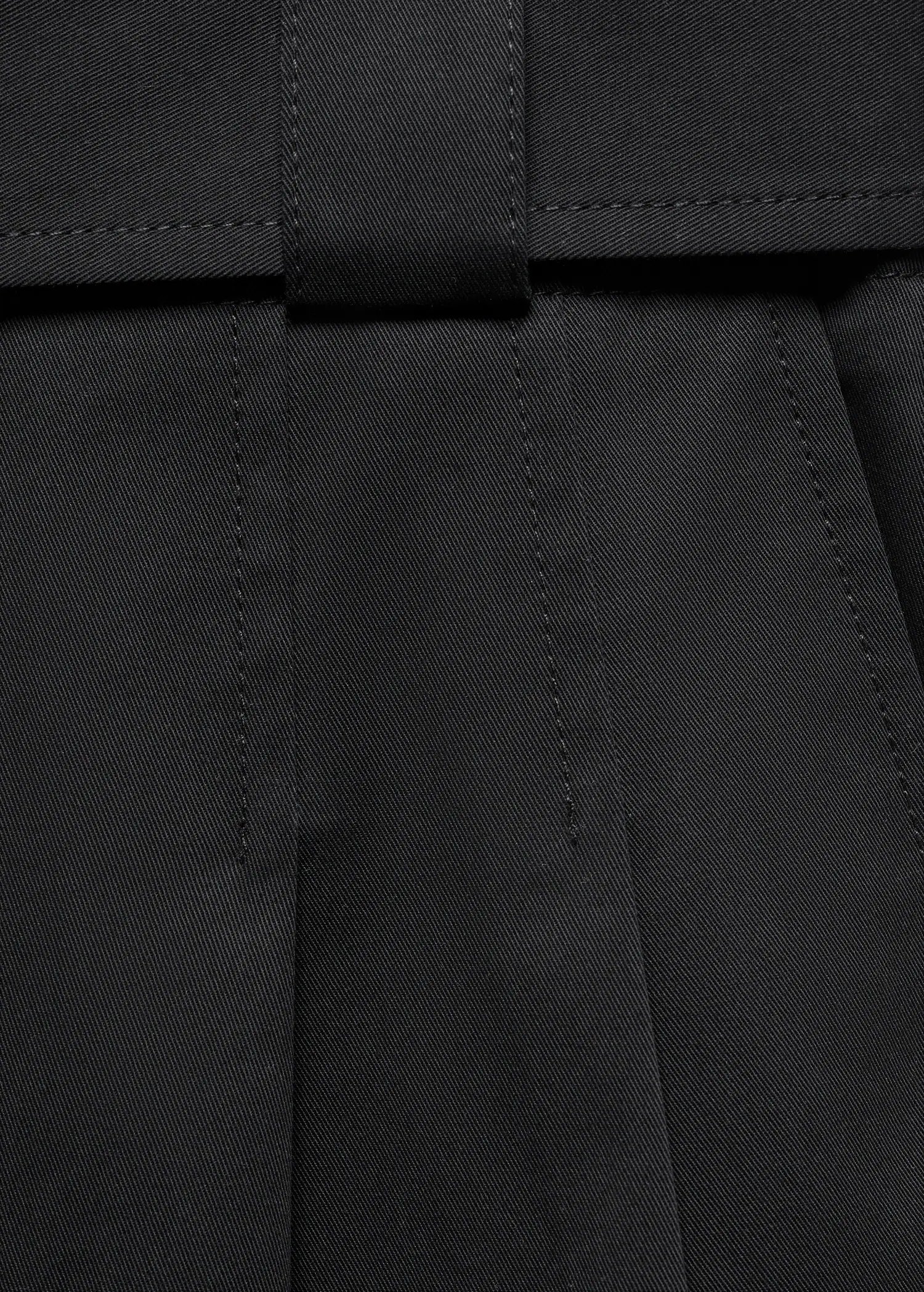 Tissu en mélange de coton. Design long. Design droit. Deux poches latérales. Deux poches passepoilées à l’arrière. Fermeture Éclair avec agrafe et bouton dissimulés. Passants de ceinture. Ceinture amovible.