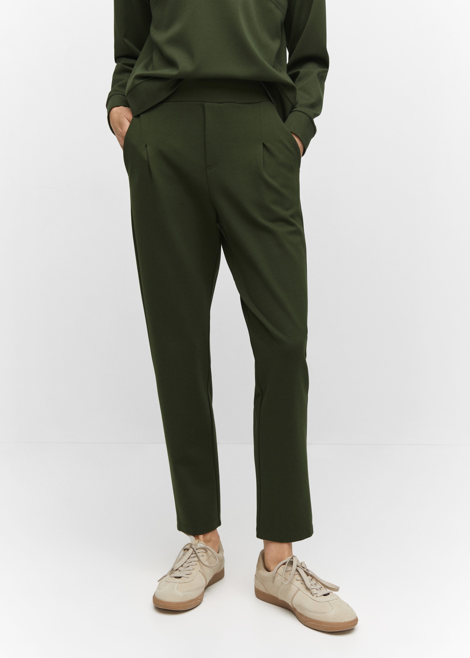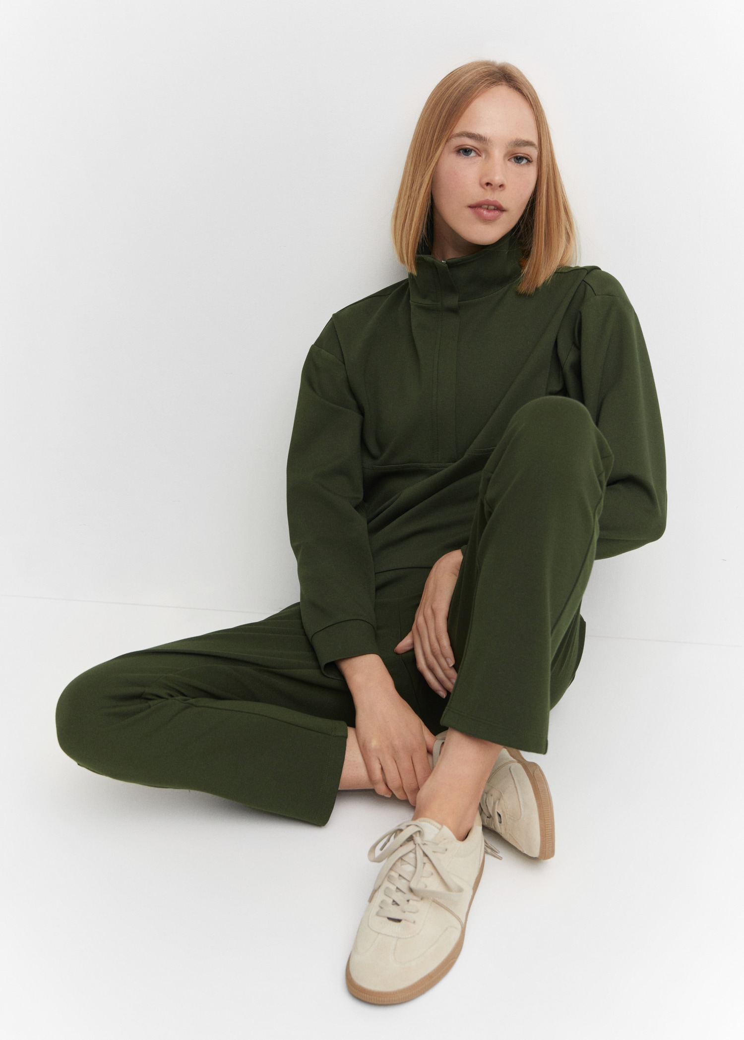 Pantalon de jogging. Coupe longue. Taille haute. Deux poches latérales. Ceinture élastiquée. Sans fermeture. Look complet.