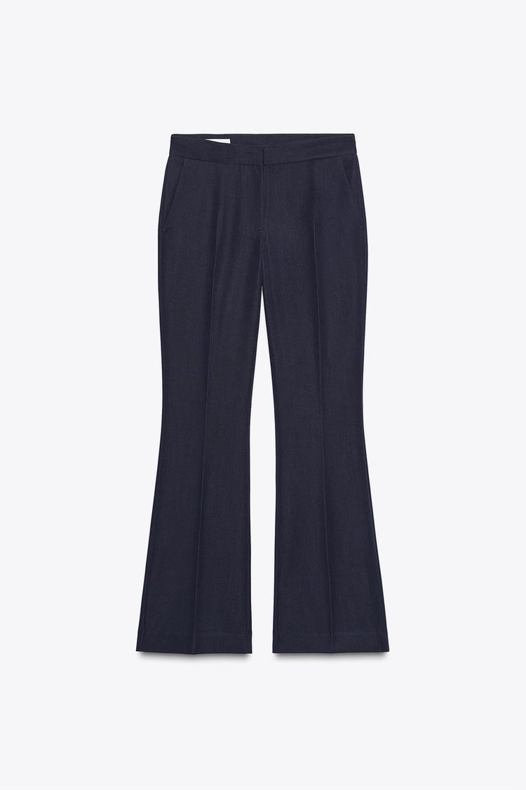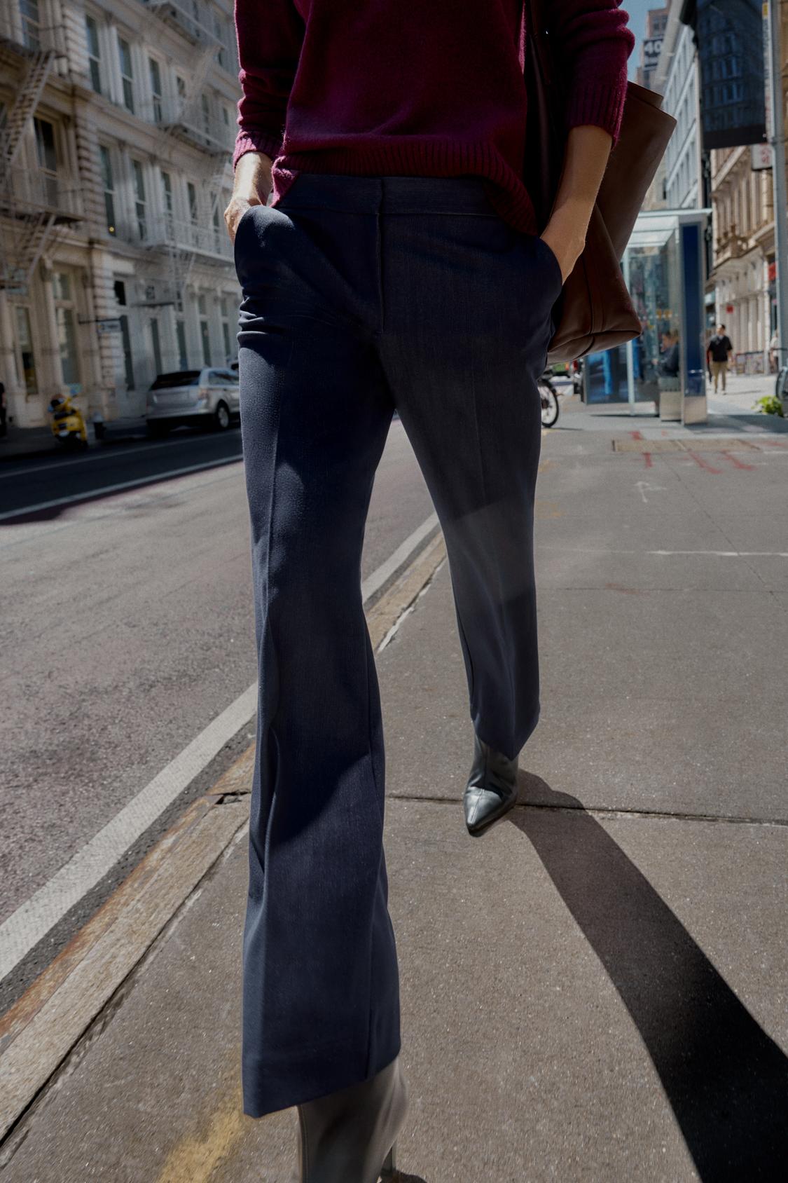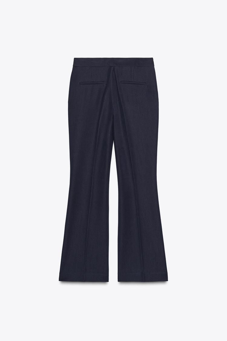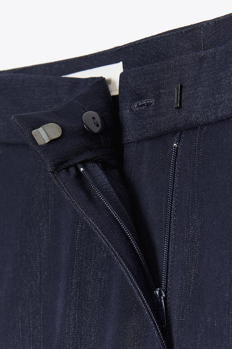 Pantalon taille mi-haute avec poches avant et fausses poches passepoilées à l’arrière. Jambe droite. Fermeture avant avec zip, bouton intérieur et crochet.