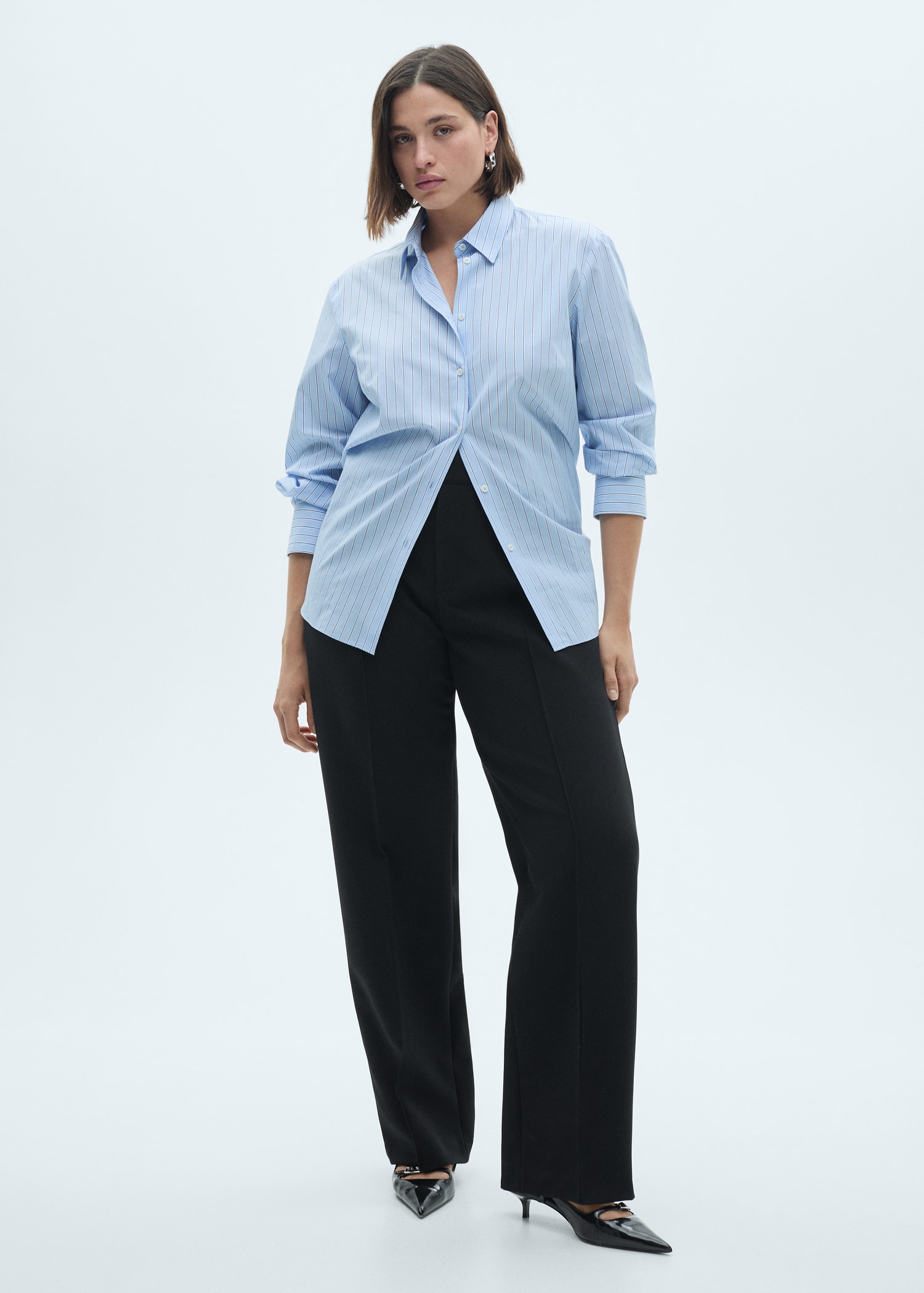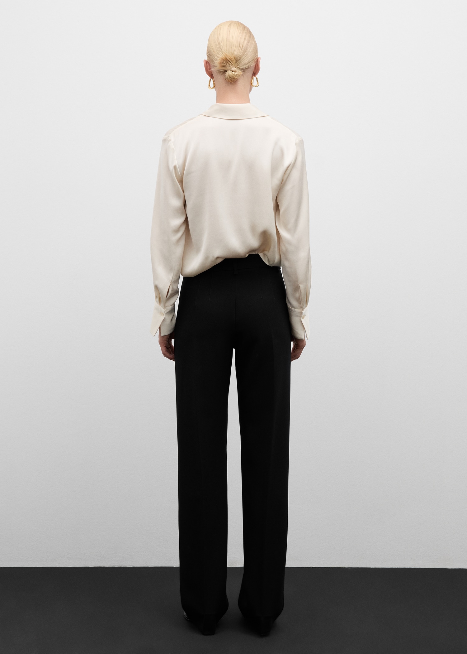 Coupe droite. Taille mi-haute. Passants de ceinture. Fermeture à bouton, crochet et zip. Coutures décoratives. Collection soirée et cérémonie