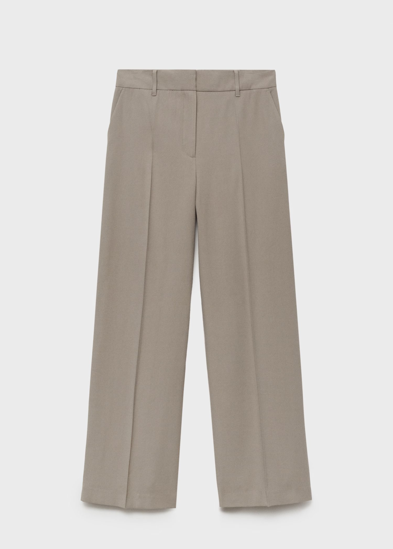 Tissu fluide. Design long. Coupe large. Taille mi-haute. Deux poches latérales. Passants de ceinture. Fermeture Éclair avec agrafe et bouton dissimulés. Pinces.