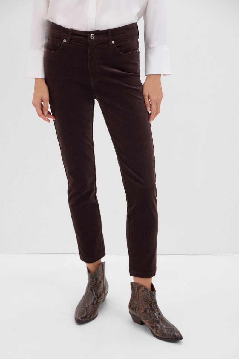 Pantalon 5 poches sensationnel en velours côtelé Modèle à cinq poches, taille moyenne-haute avec un renfort spécial à l’intérieur du vêtement qui peut vous faire réduire jusqu’à une taille.