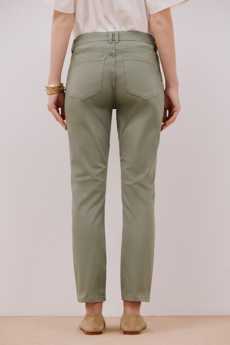 – Coupe slim courte – Taille mi-haute – Longueur cheville – Fermeture éclair et bouton dissimulés