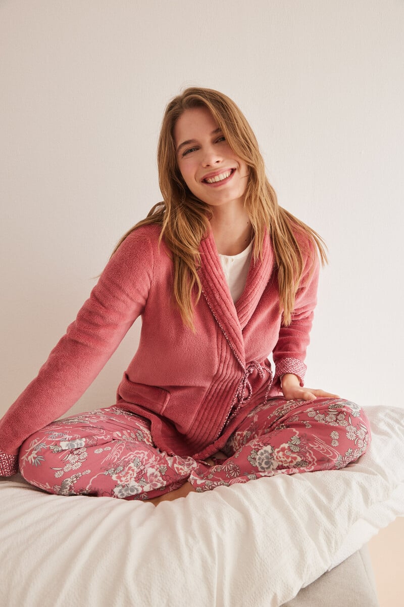 Robe de chambre à manches longues en polaire douce, ultra-chaude et confortable. À porter avec un pyjama de la collection pour un style impeccable à la maison.