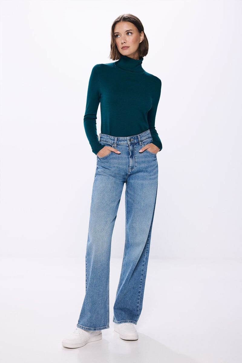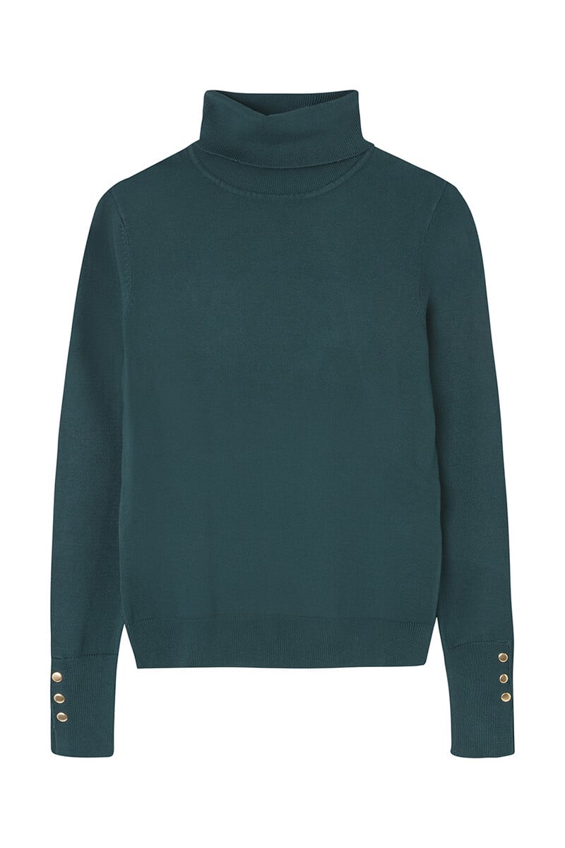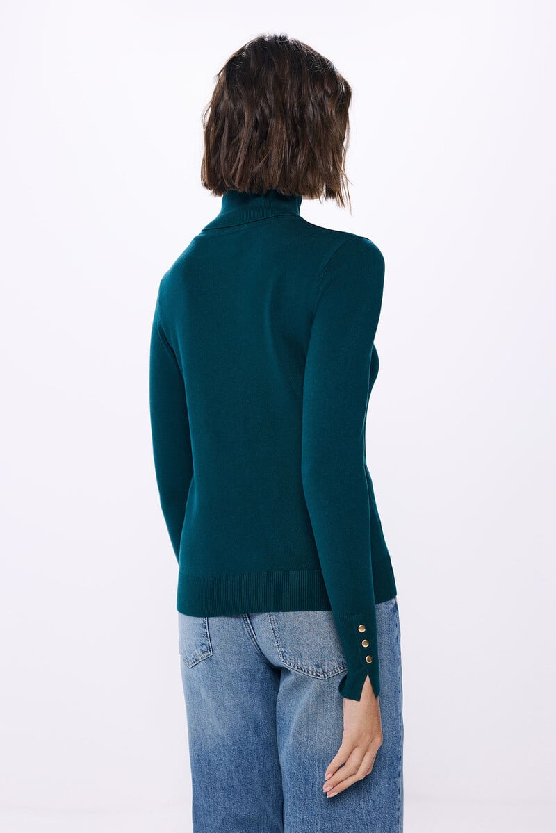 Pull à manches longues avec col montant, détails boutonnés aux poignets et finitions côtelées au col, aux poignets et à l’ourlet.