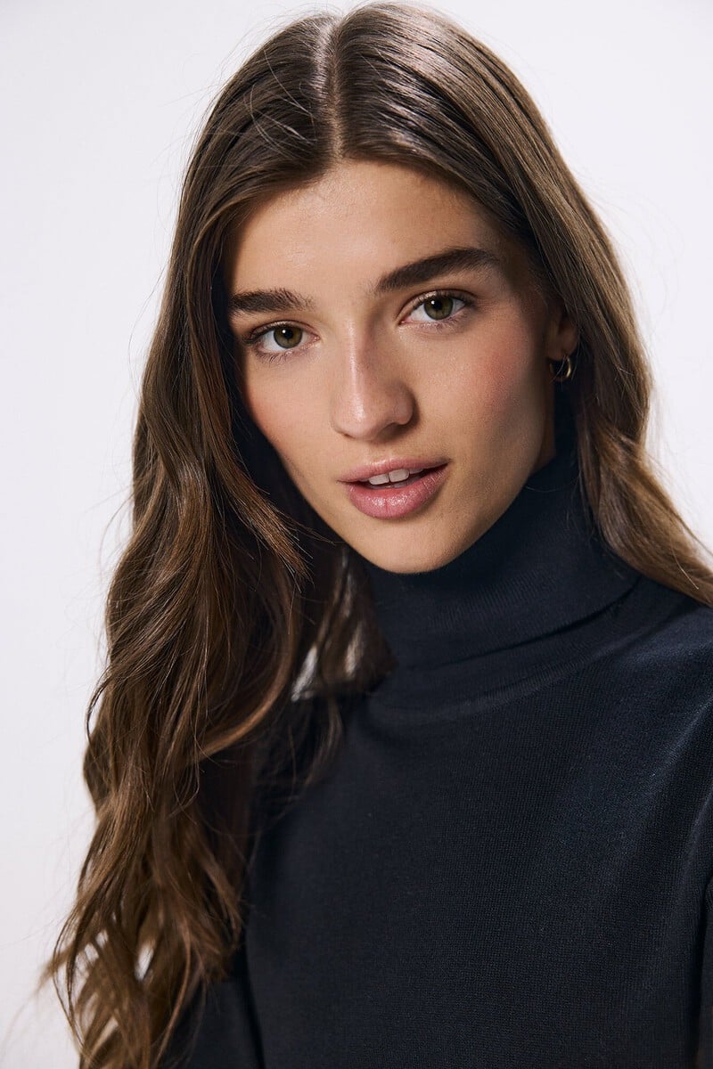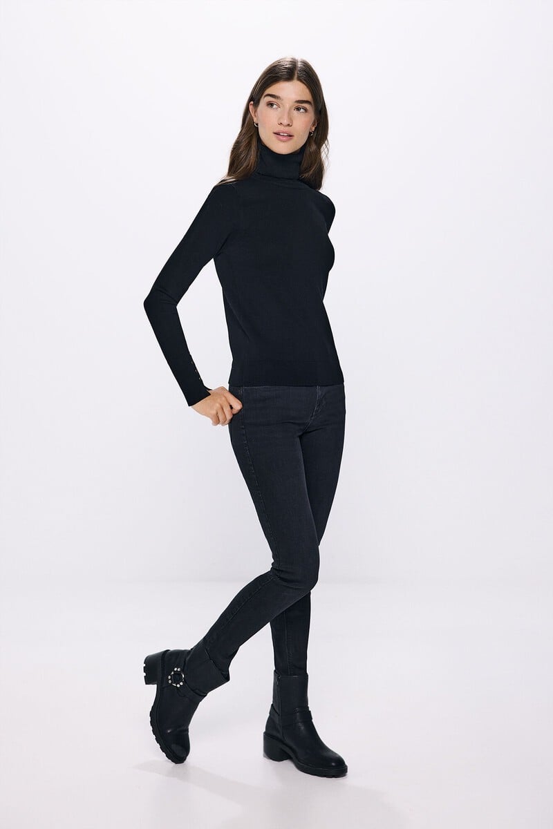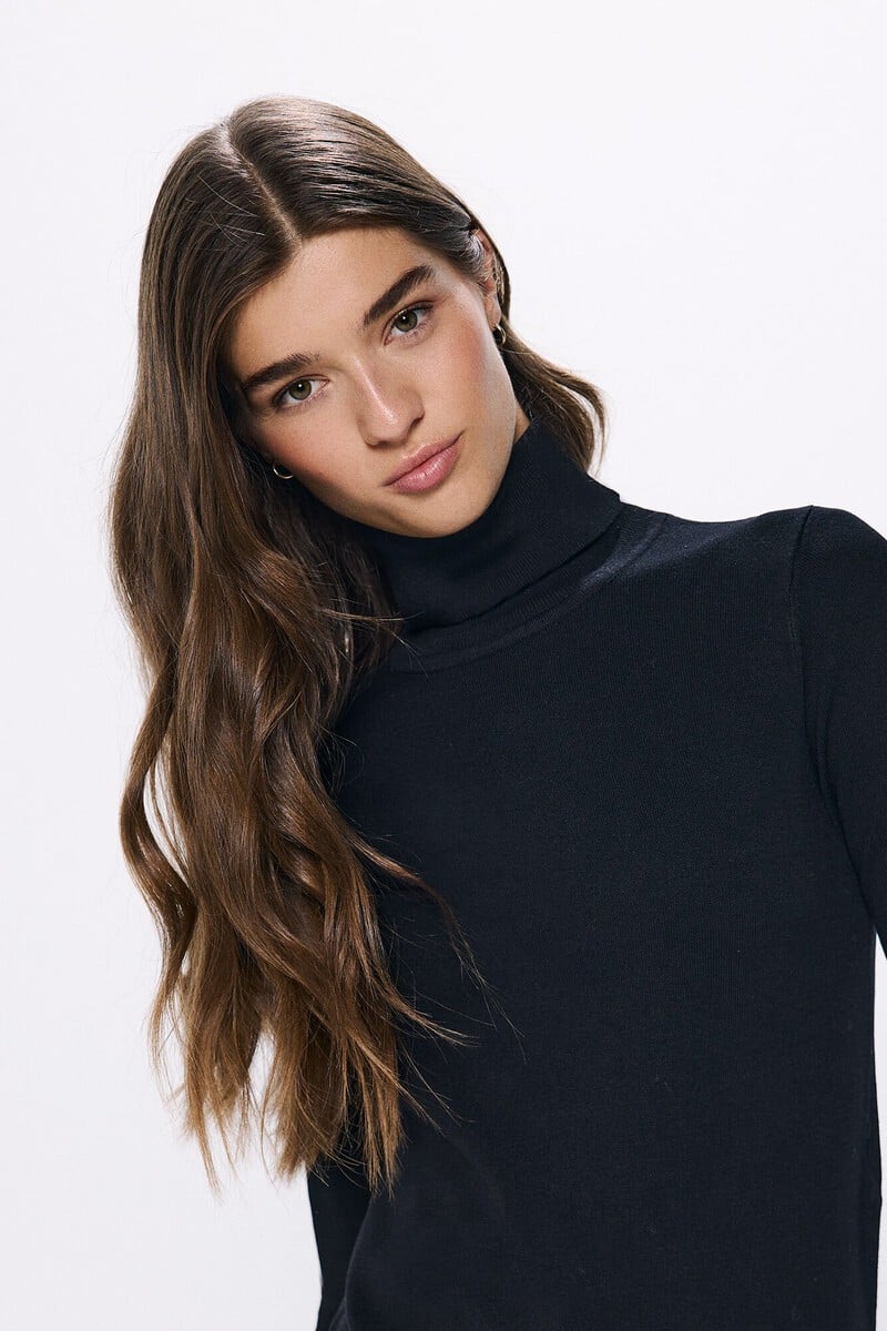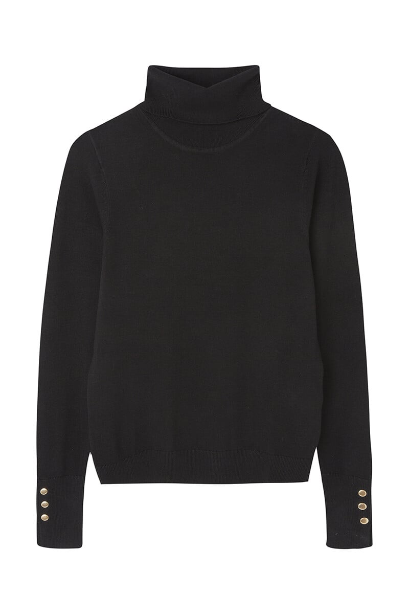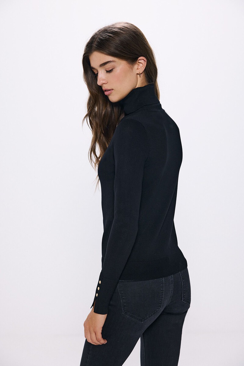 Pull à manches longues avec col montant, détails boutonnés aux poignets et finitions côtelées au col, aux poignets et à l’ourlet.