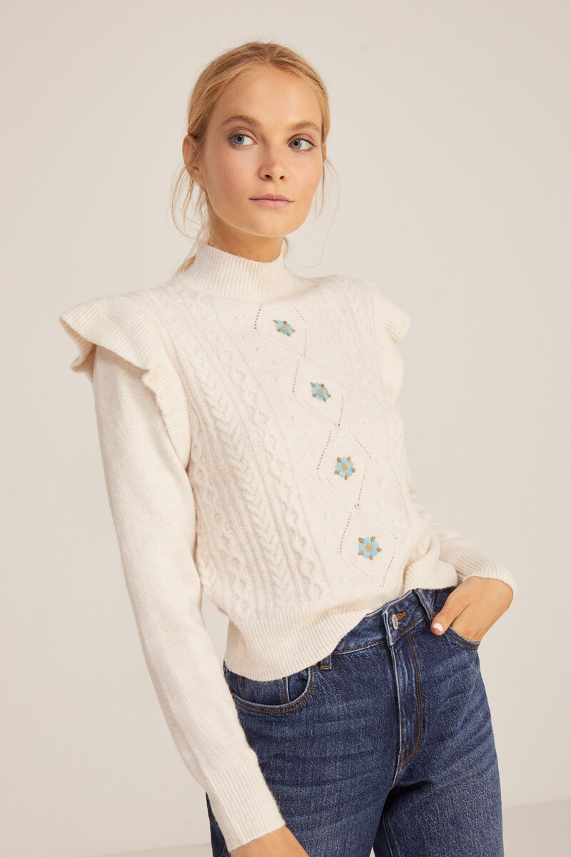 Accueil Vêtements Femme GILET ET PULL Pull à volants fleuri brodé