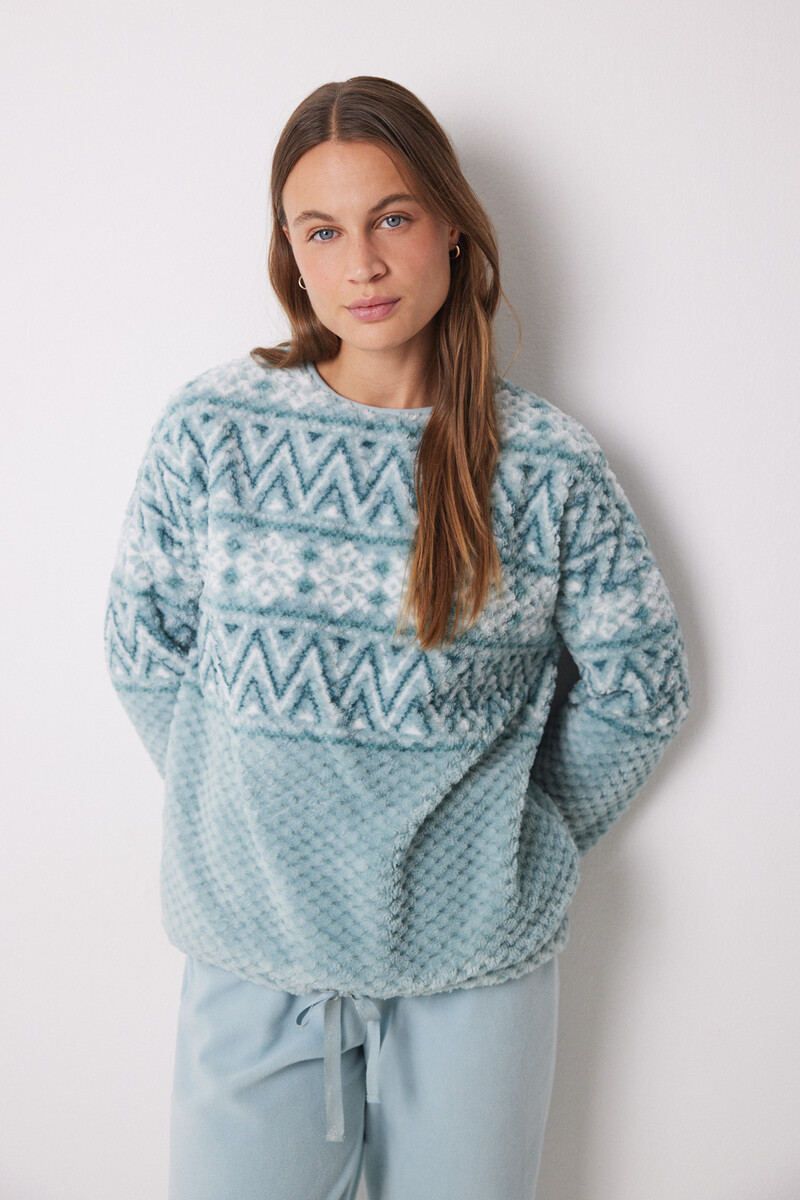 Accueil Vêtements Femme Pyjama Pyjama long polaire effet jacquard bleu