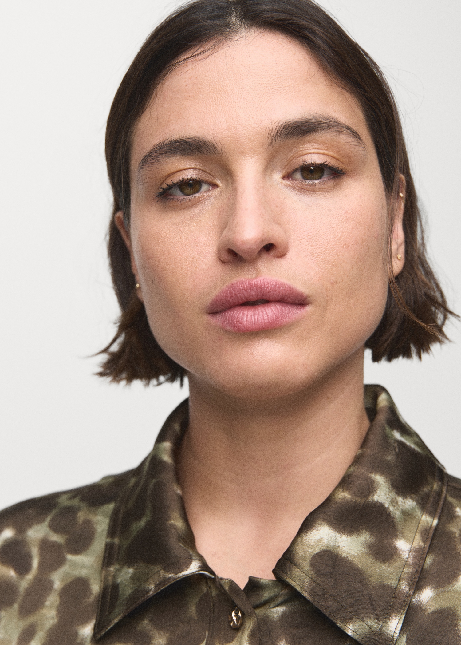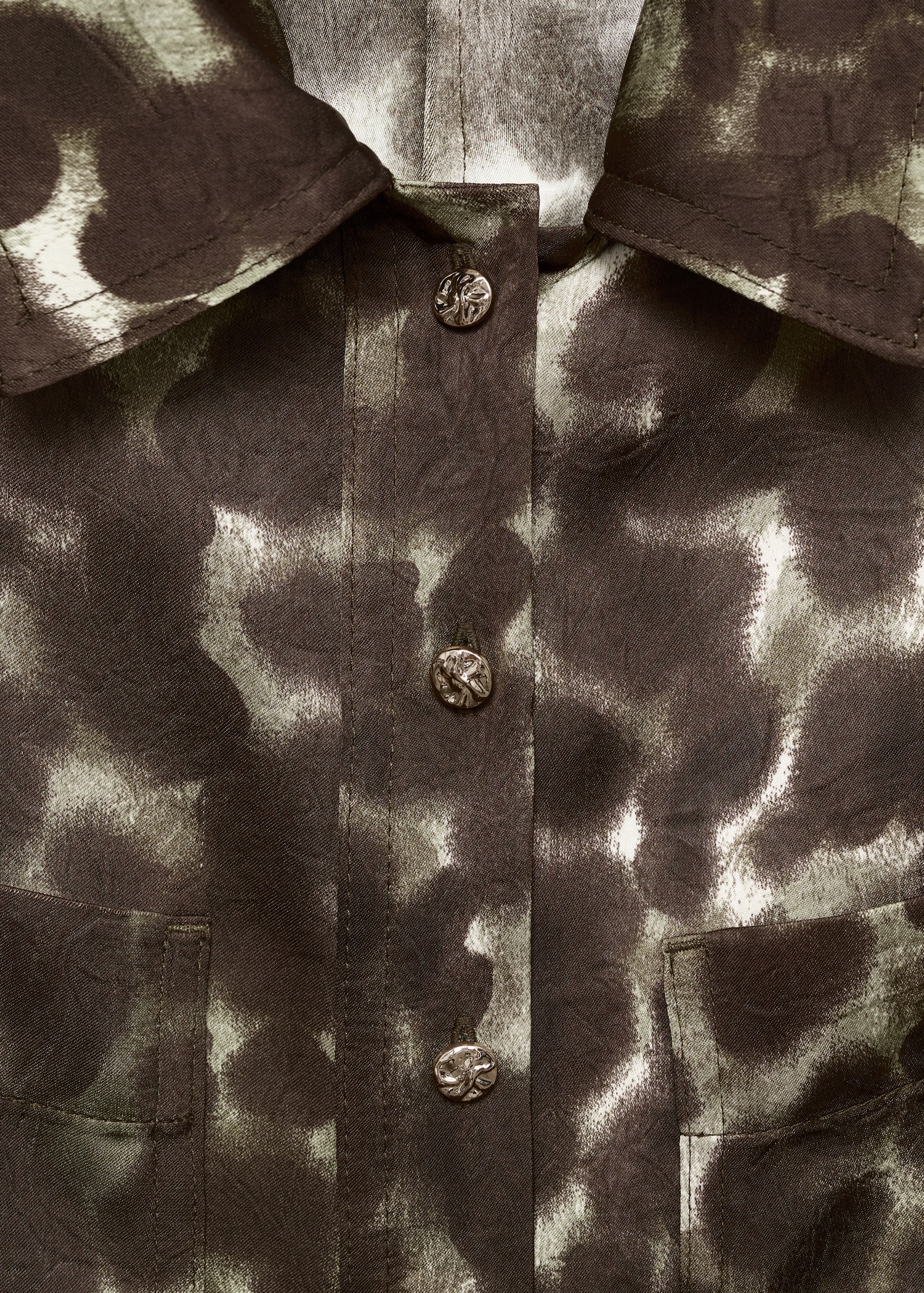 Coupe midi. Coupe droite. Motif imprimé. Col chemise. Manches longues et poignets boutonnés. Deux poches plaquées sur la poitrine. Ceinture avec fermeture à boucle. Fermeture avant avec boutons