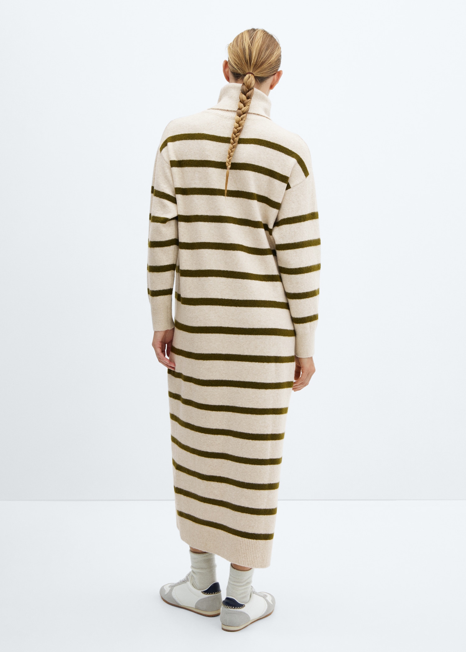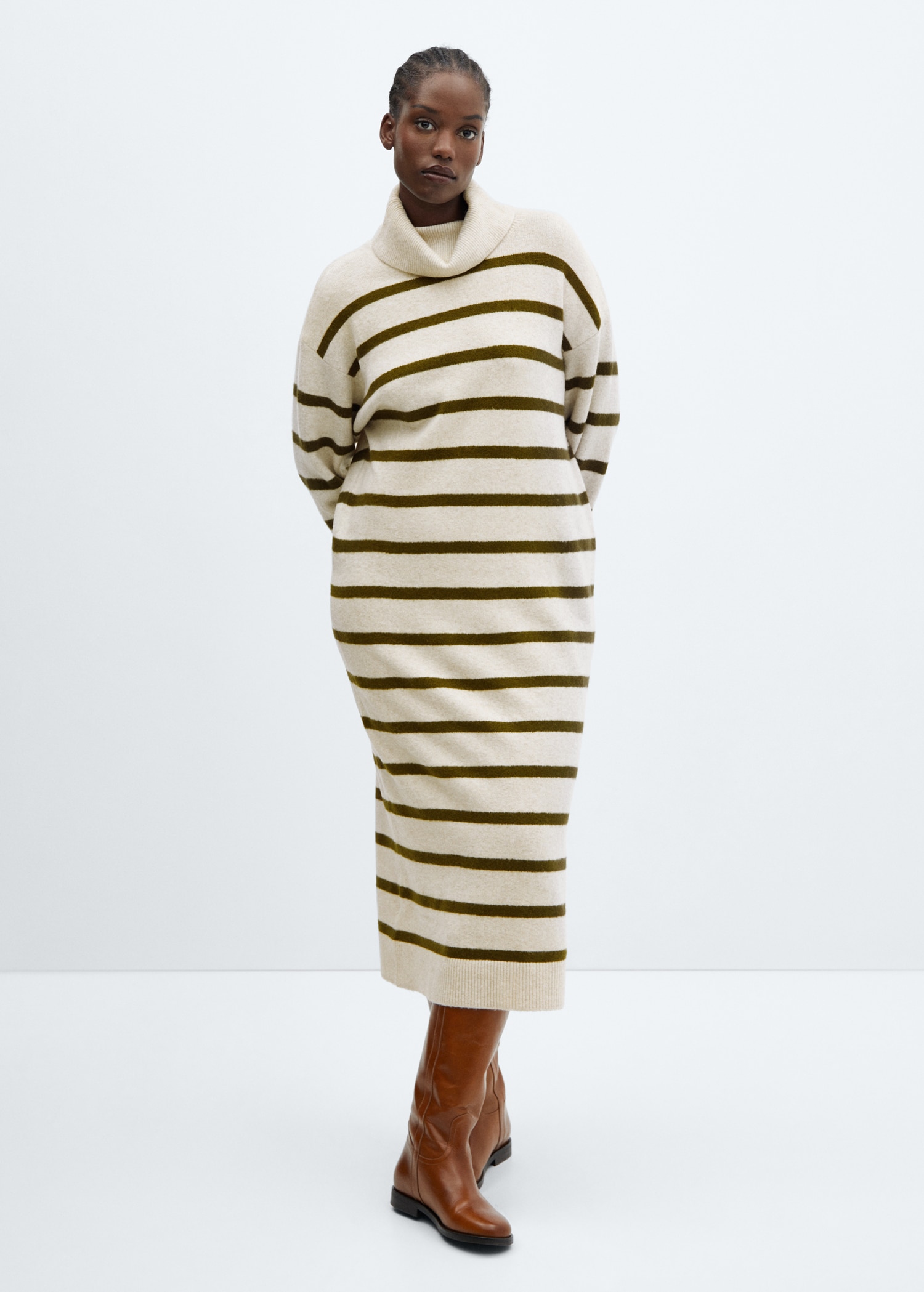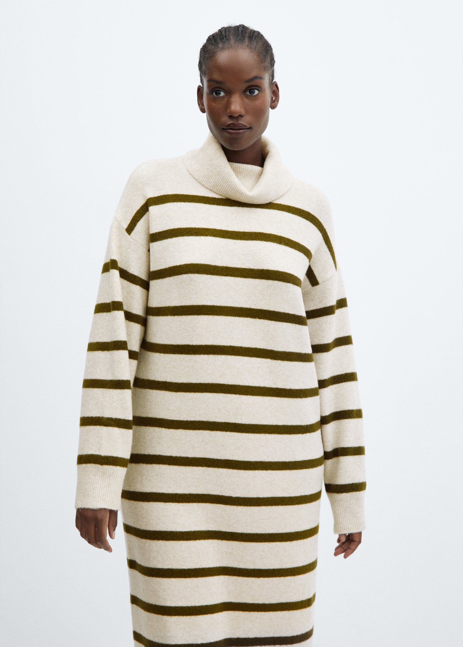 Tissu de laine mélangé. Tissu en grosse maille. Design Droit. Design long. Motif à rayures. Col roulé. Manche longue. Sans fermeture.