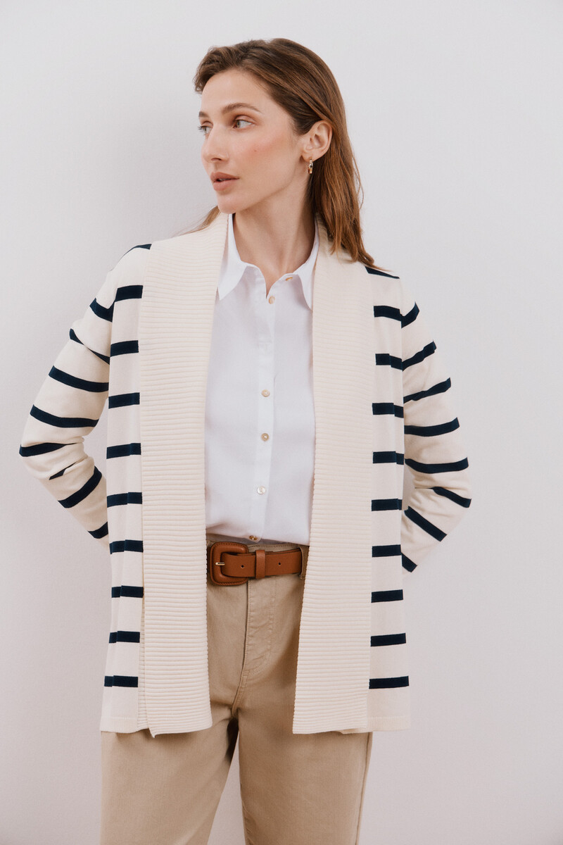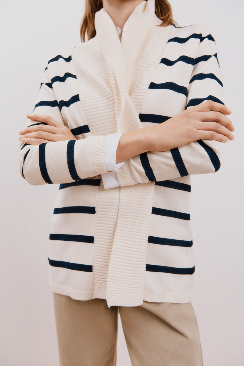 – Veste tricotée à col châle ouvert.