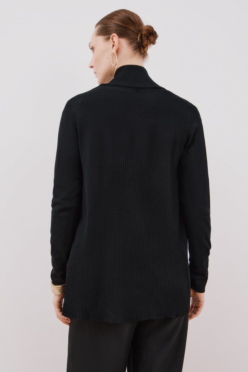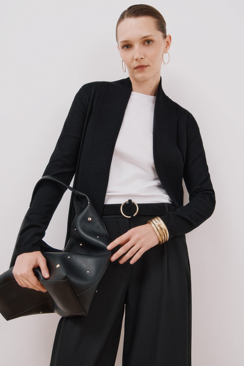 – Veste tricotée à col châle ouvert.