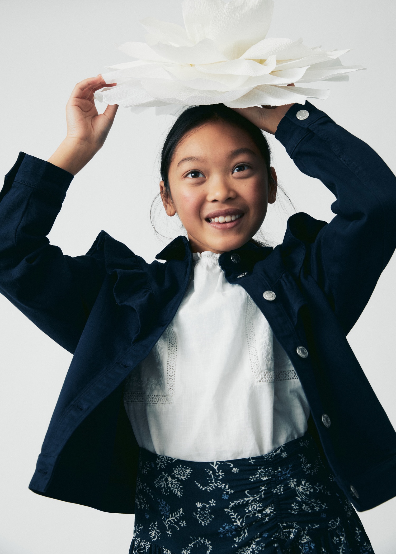 Tissu en coton. Design droit. Design à volants. Col chemise. Fermeture avant. Sans doublure intérieure. Manche longue. Fermeture à boutons. Ce modèle est également disponible dans la collection Baby Girl.